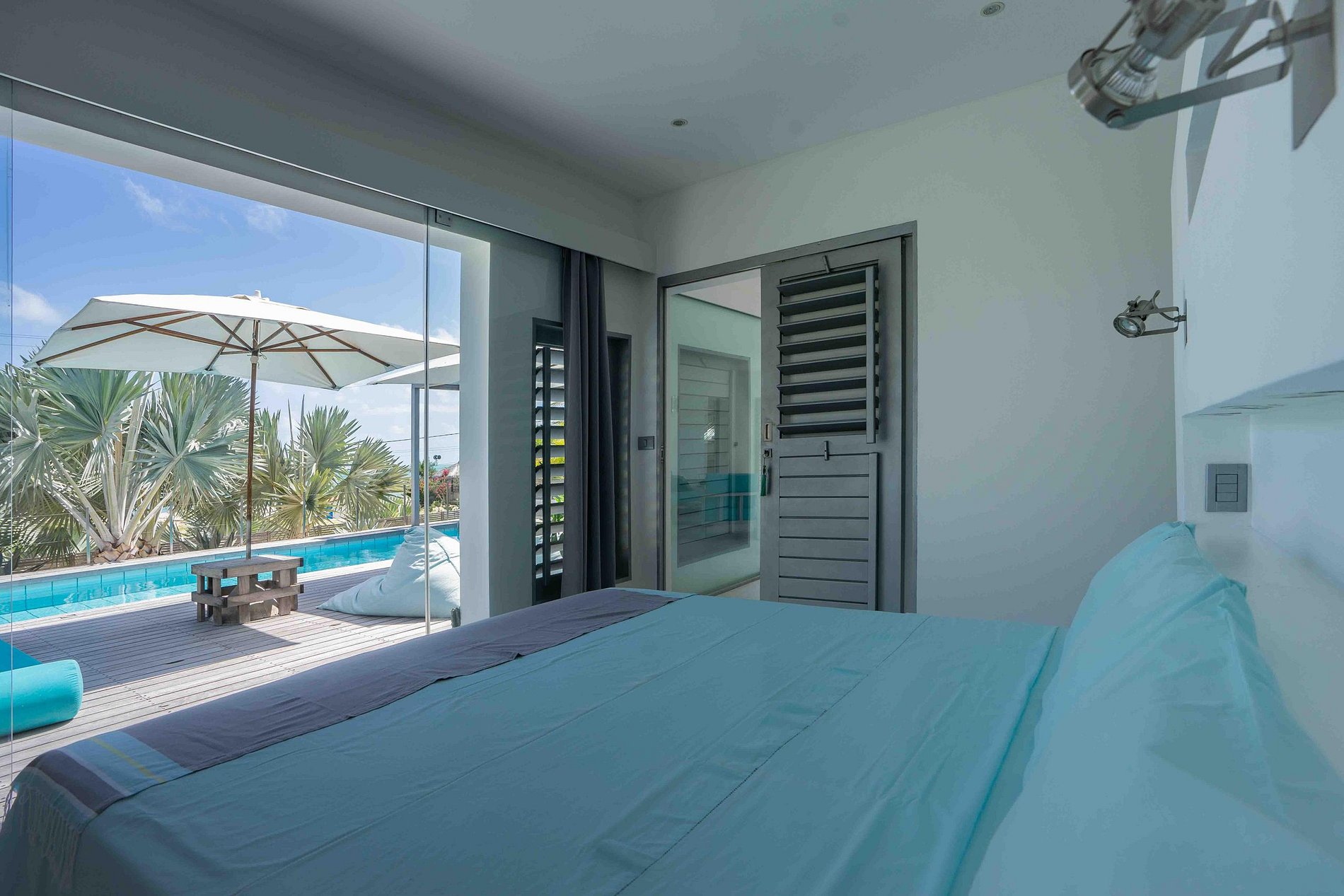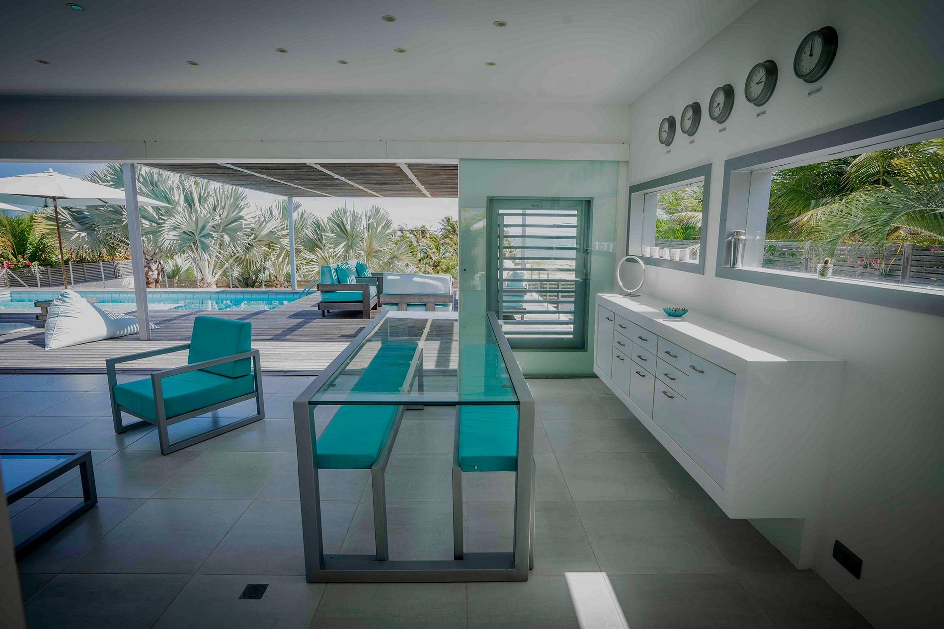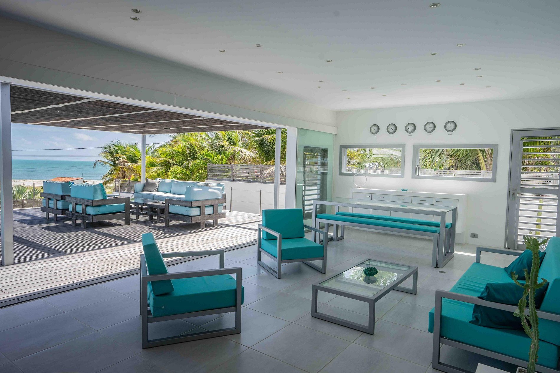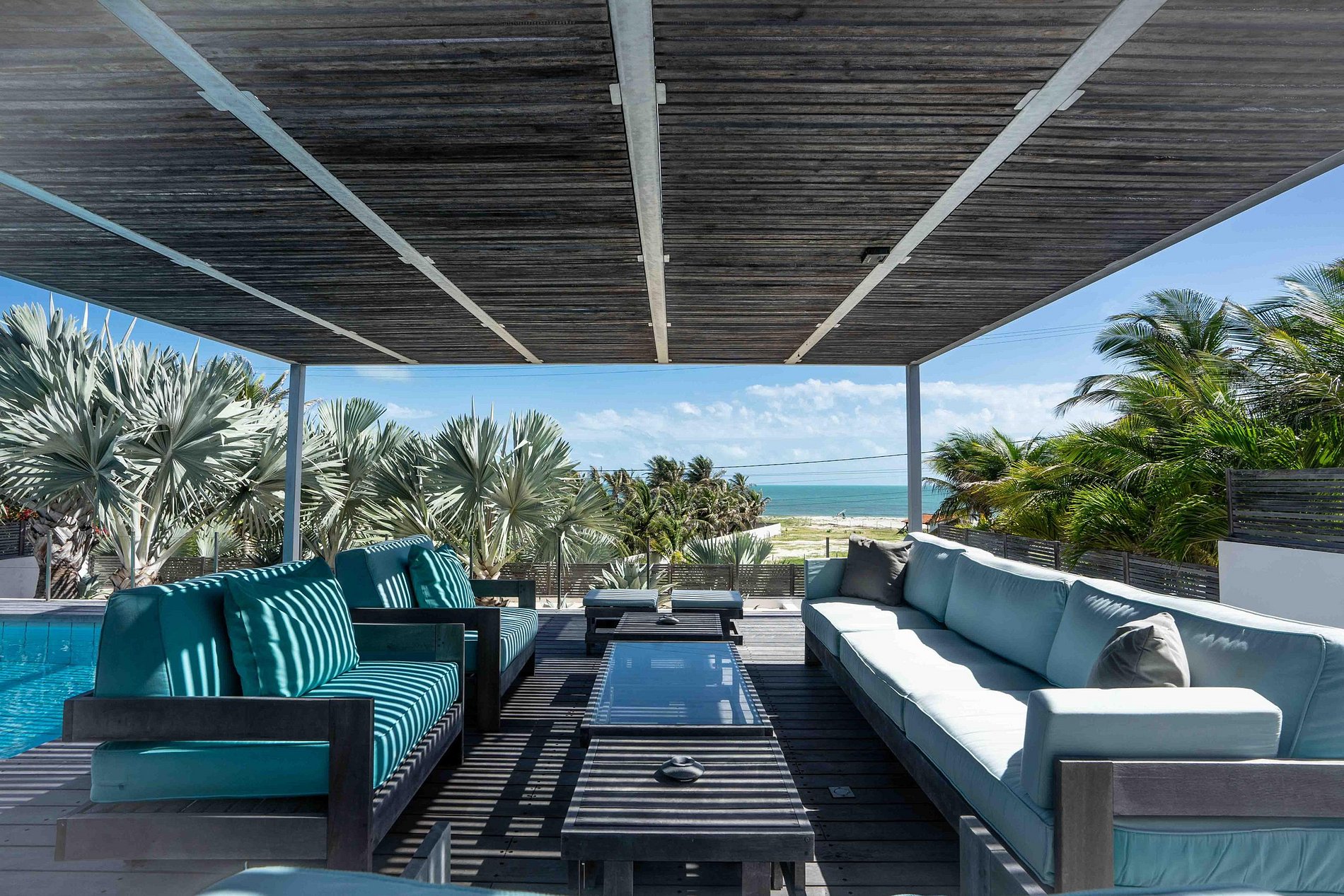 Grandes aberturas de vidro proporcionam ventilação cruzada e conexão direta com a área externa.