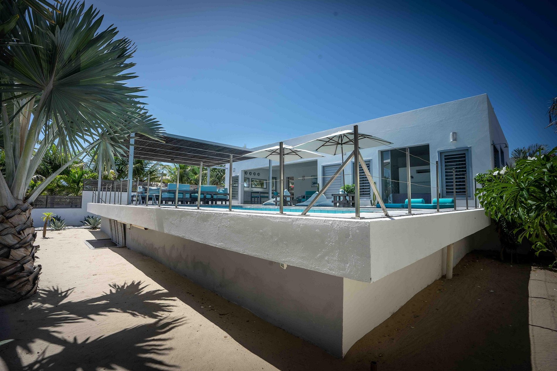 Grandes aberturas de vidro proporcionam ventilação cruzada e conexão direta com a área externa.