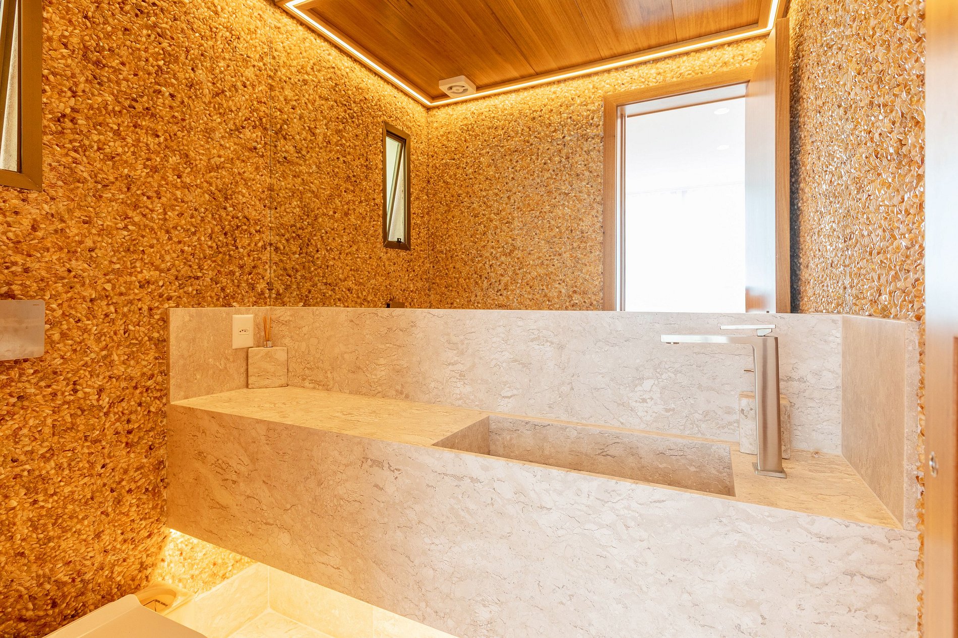 The apartment was recently renovated by a Brazilian-Swiss architect, using the finest materials in the country, including marble in the social areas, in the Master Suite and in the bathrooms, Hungarian parquet in the other rooms, and even semi-precious stones on the walls of the guest toilet.