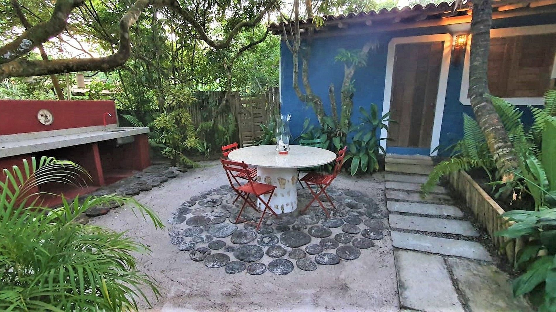 The house has a charming open environment, full of windows and a large veranda with hammocks and a dining table that leads to the garden with several trees and beautiful flower beds. For barbecue lovers, the garden has a barbecue area with a dining table and barbecue.