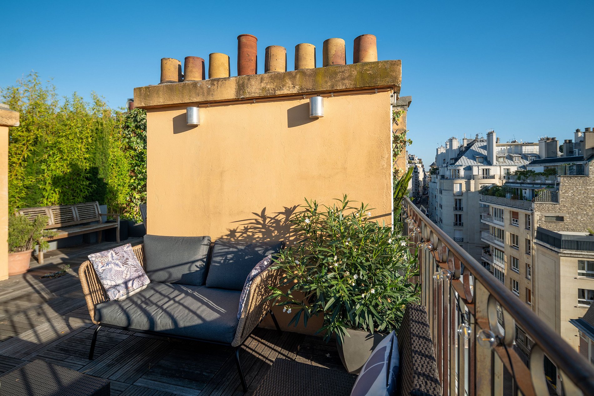Balcony & Terrace: Enjoy a large balcony that runs the entire length of the property, as well as a lovely 50m2 terrace offering panoramic views of the rooftops of Paris. It's the perfect place to enjoy a sunny breakfast or host gatherings with friends.