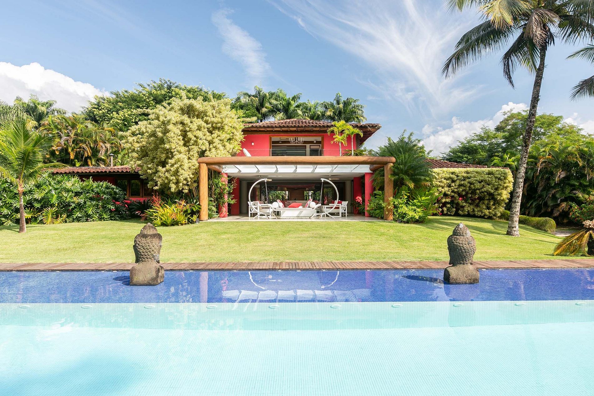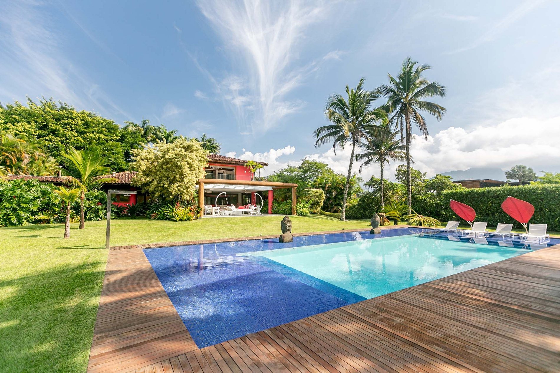 This beautiful 2-story villa is a gem surrounded by scenic landscapes, located in the exclusive gated community of Portobello in Mangaratiba, just 1h30 away from Rio de Janeiro by car. The 800 m2 house was built and decorated by renowned architects and interior designers, who created a stylish and tasteful environment, full of comfort and exclusivity. The villa has very open spaces that allow you to see all the way through to the pool from the entrance, giving a feeling of spaciousness.