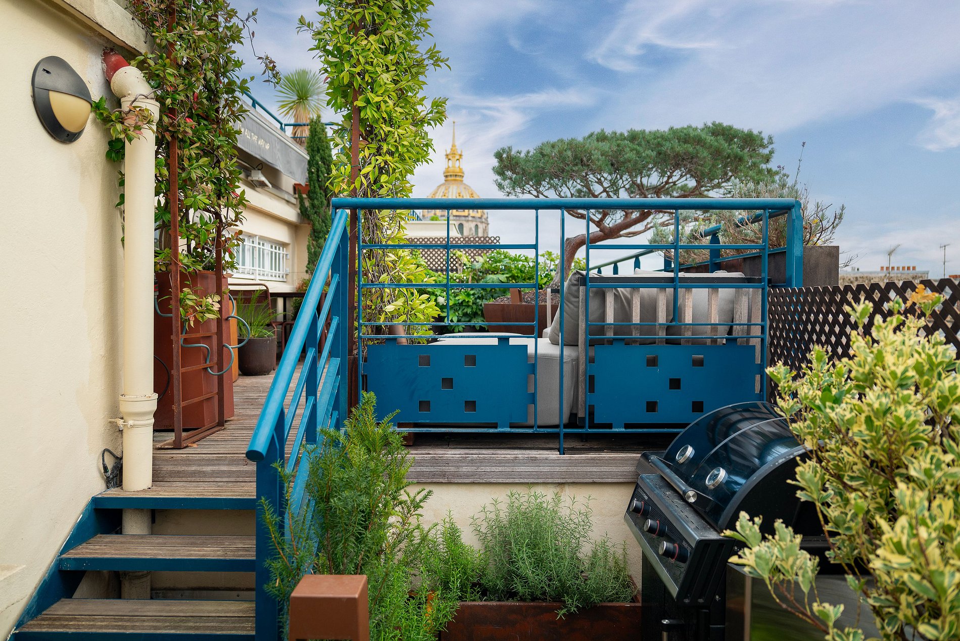 Nestled in the heart of the Les Invalides district, this rooftop apartment offers a breathtaking view of the iconic dome of Les Invalides, one of the most recognizable silhouettes of the City of Light. Located in one of Paris's most sought-after districts, this luxurious gem boasts a spacious terrace of over 45m2, fully equipped and designed for your comfort.