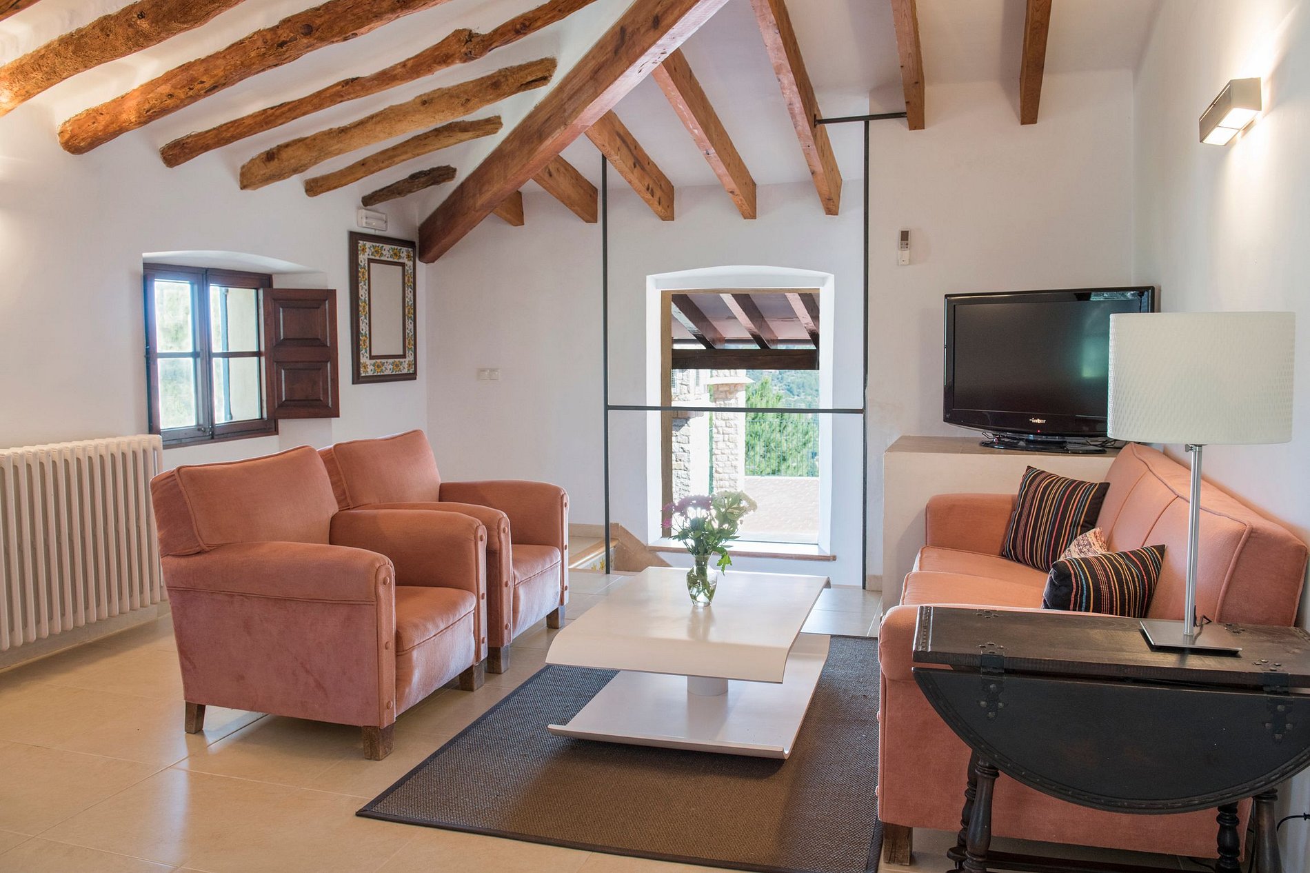 La zona exterior cuenta con jardines rurales, privados y una piscina con vistas panorámicas. Fuera del perímetro de la casa, los huéspedes pueden disfrutar plenamente de las exuberantes y verdes laderas de la Sierra de Tramuntana.