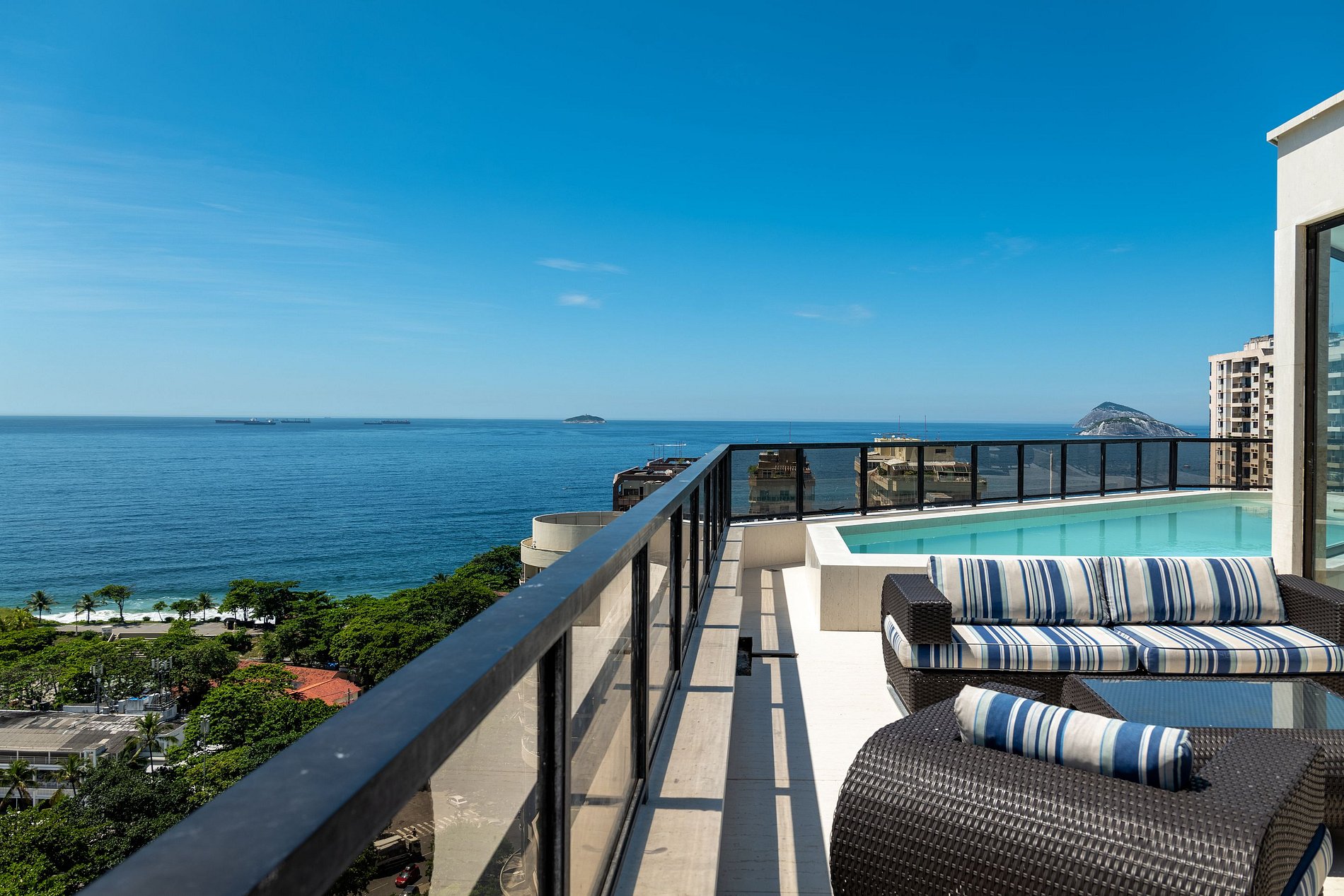 Área de 650 m2. Esta propiedad cuenta con 4 amplias habitaciones con magníficas vistas desde sus balcones y amplias salas de estar, además cuenta con una suite principal con vista a la playa y al fuerte de Copacabana. Tiene una cocina americana equipada para realizar cualquier tipo de comidas. Vistas al mar, la playa y a las montañas rodean toda la propiedad.