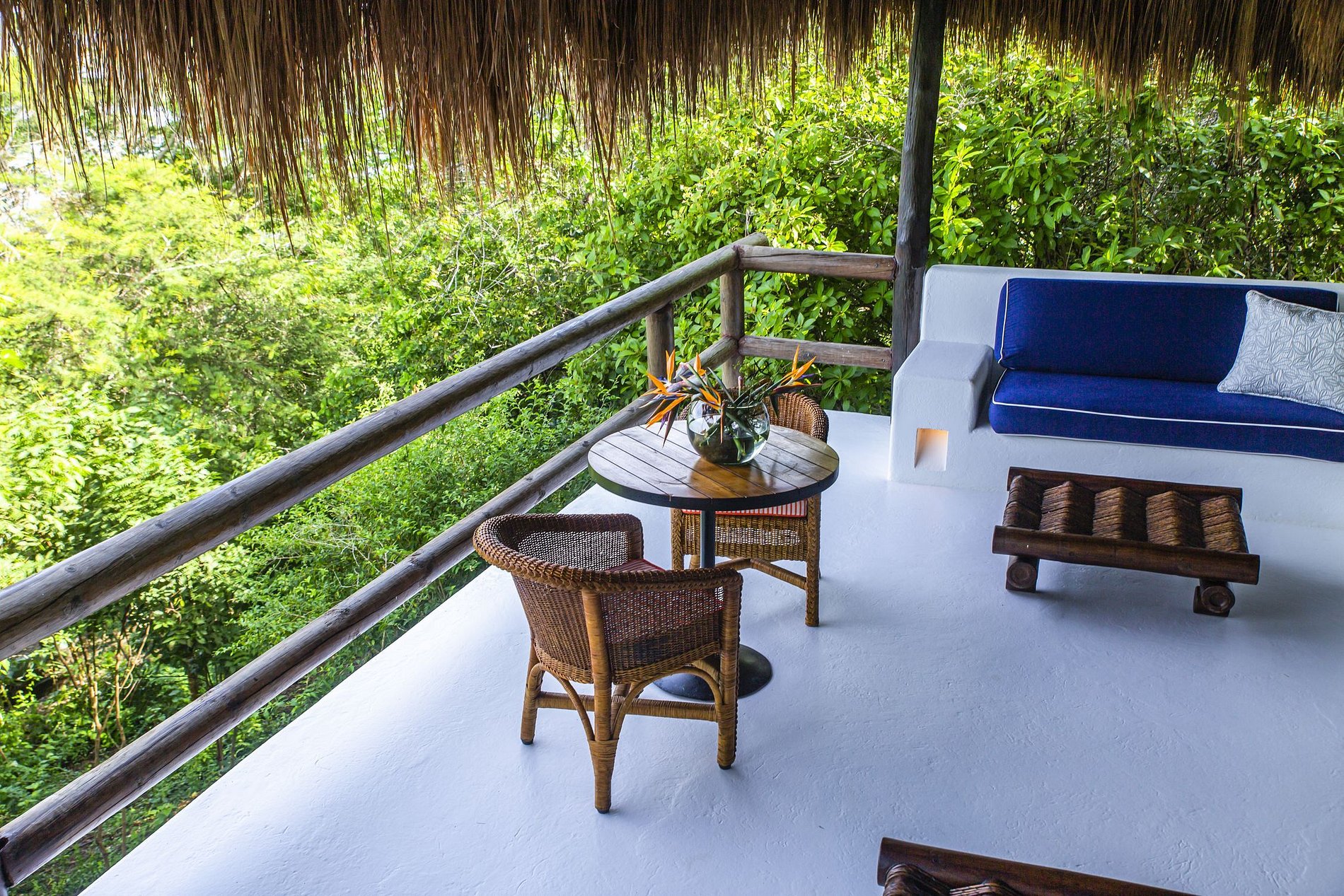 El segundo y tercer bungalows tienen cada uno 3 cuartos con capacidad para 4 cada uno. Todas sus hermosas suites cuentan con aire acondicionado y baños privados con pisos de piedra que masajean los pies. Además, cada suite tiene un balcón con vista al bosque y al mar.