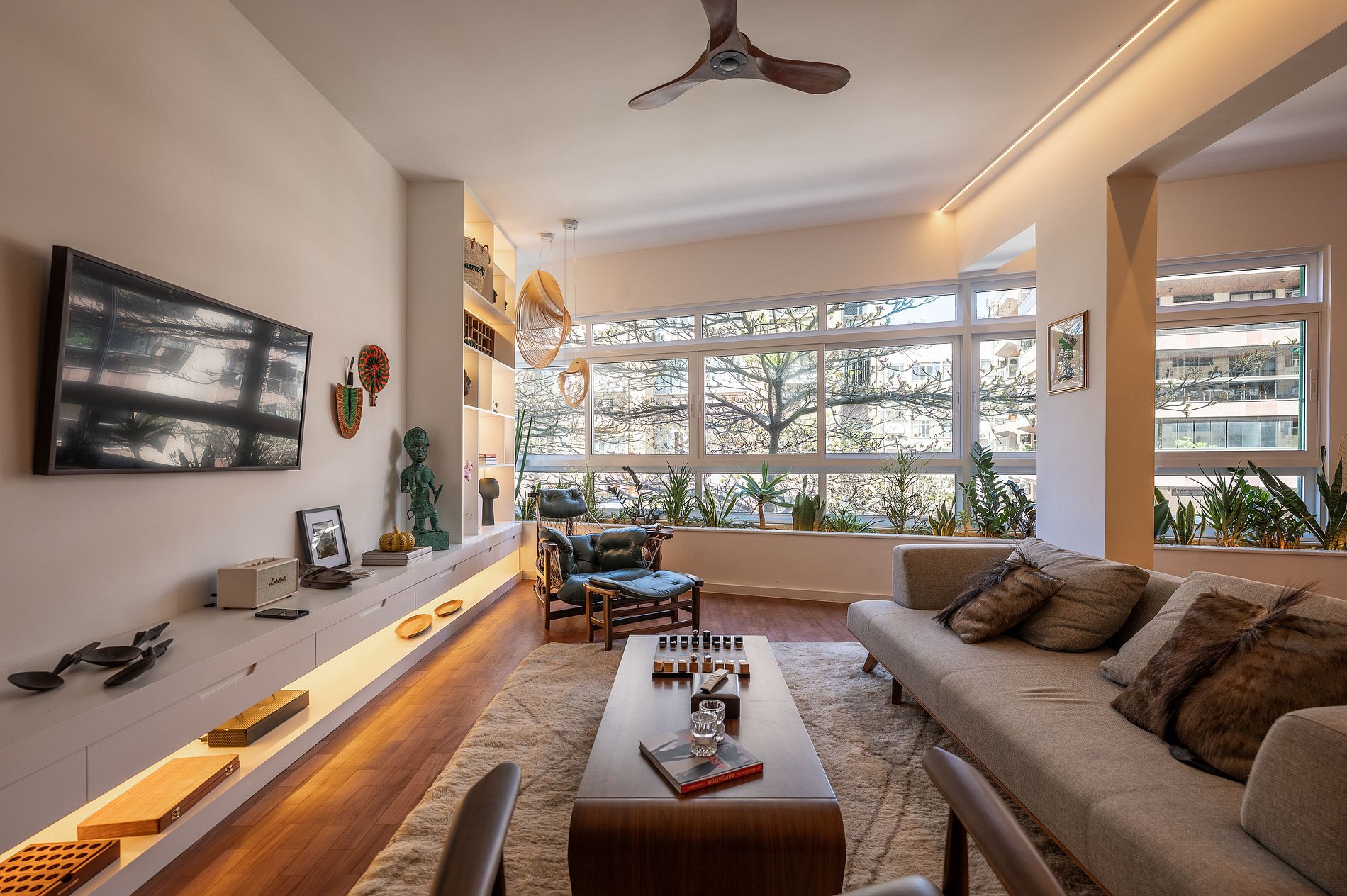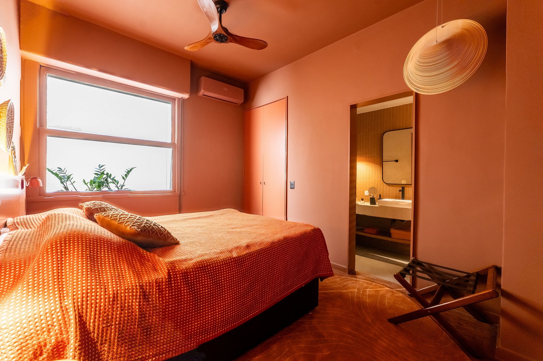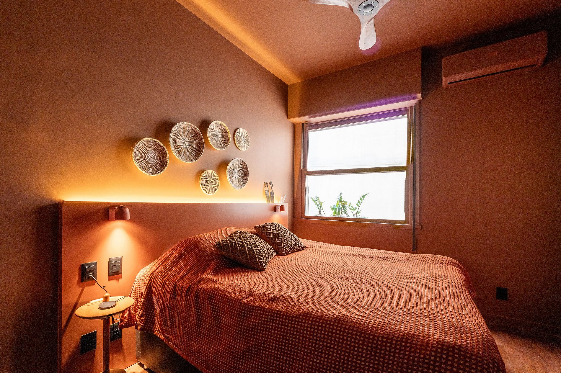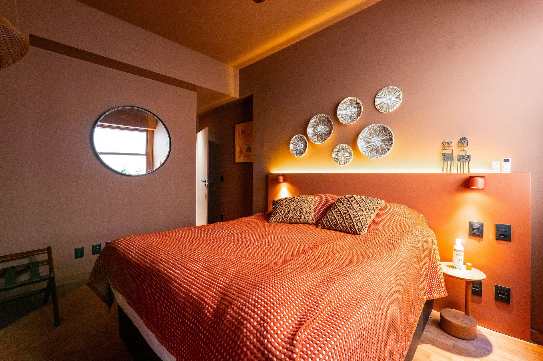 La cuidada selección de colores y materiales crea una atmósfera única: un equilibrio perfecto entre el confort contemporáneo y el toque tropical brasileño.