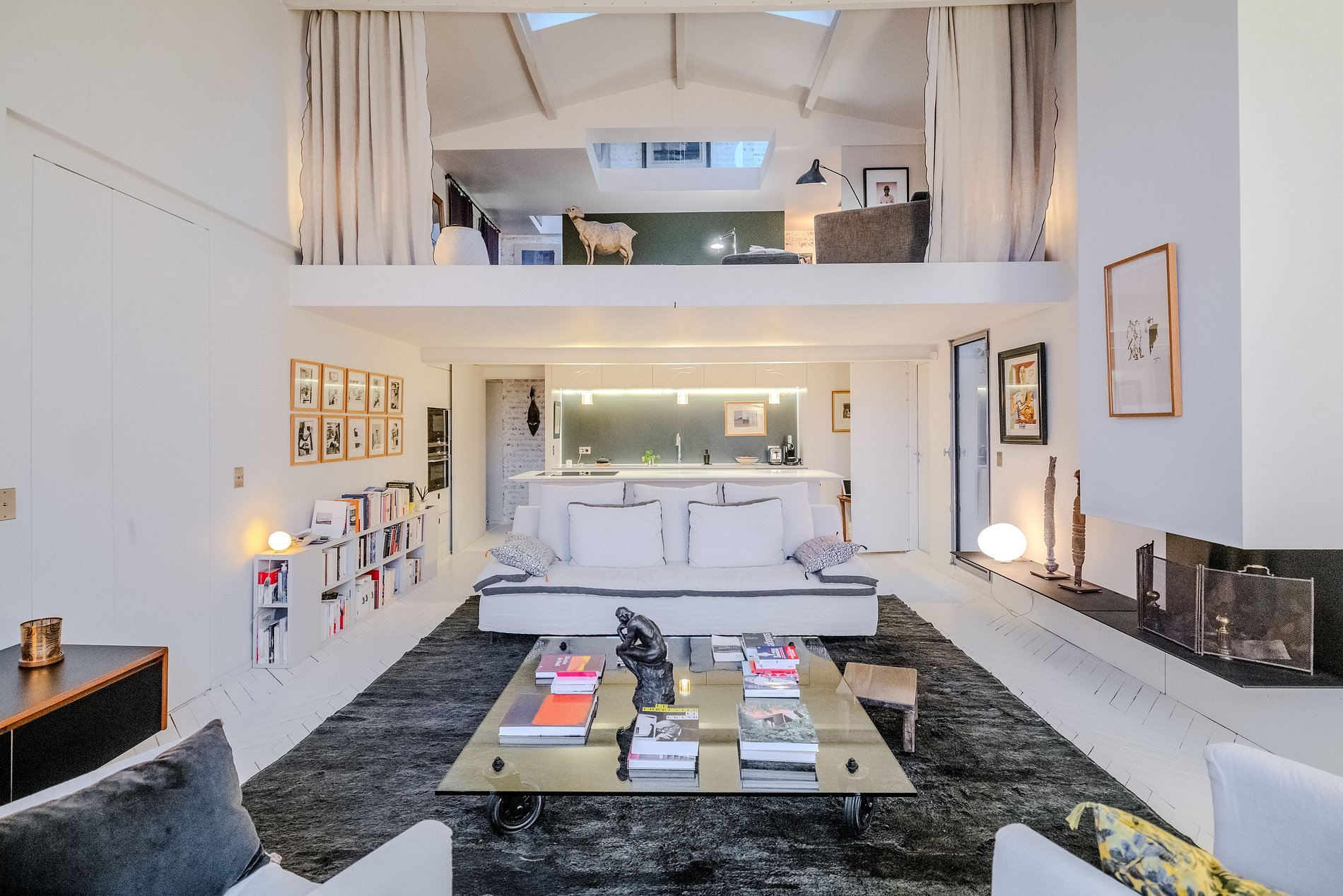 Al entrar al primer nivel del ático, serás recibido por una sala de estar muy acogedora, completa con una majestuosa ventana que baña el espacio en luz natural. El área de estar, con su decoración chic y ambiente acogedor, es perfecta para relajarse o entretener a los invitados.