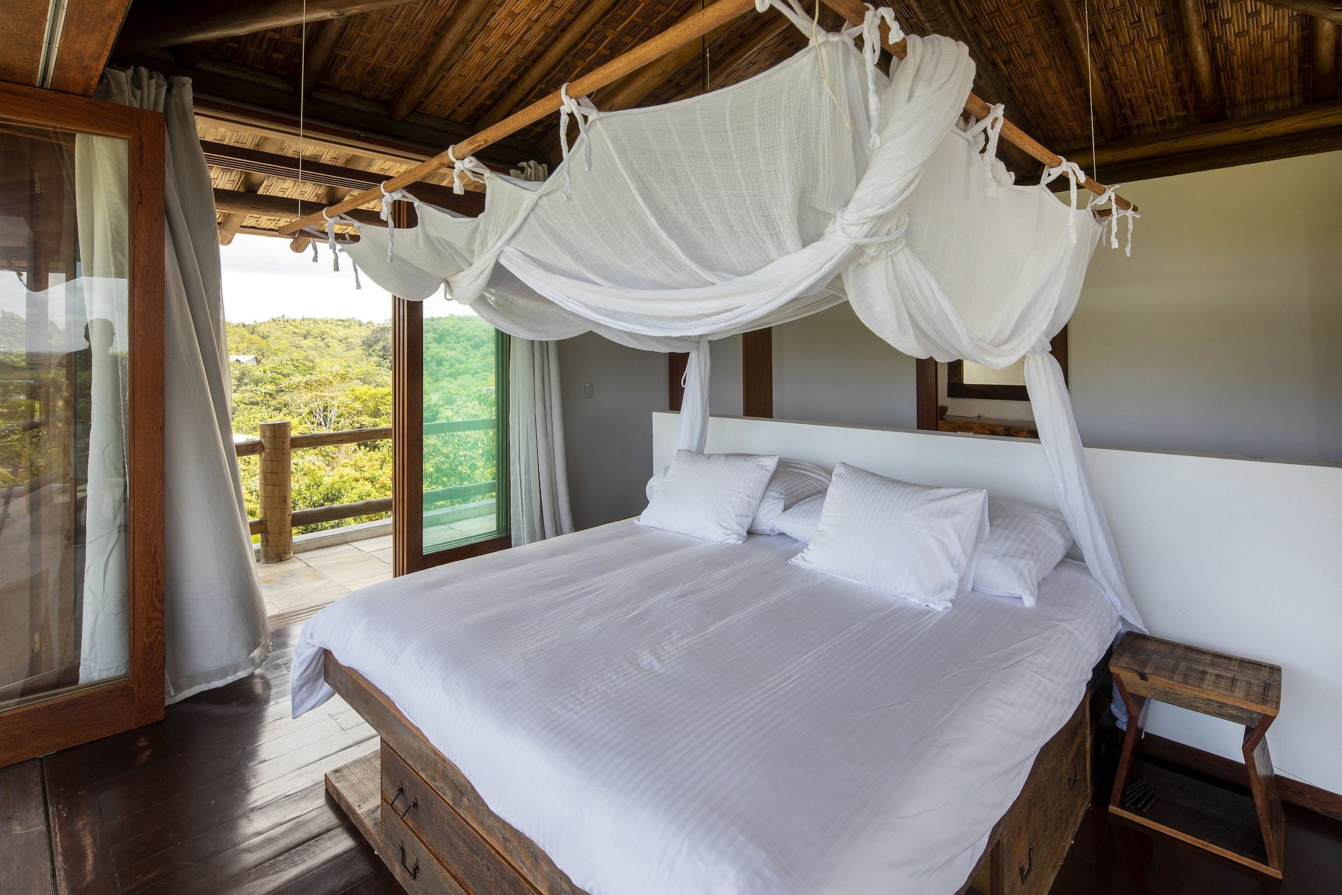 Suite principal: cama doble, aire acondicionado, balcón con vistas de 360º del bosque, la piscina, el río y el océano.