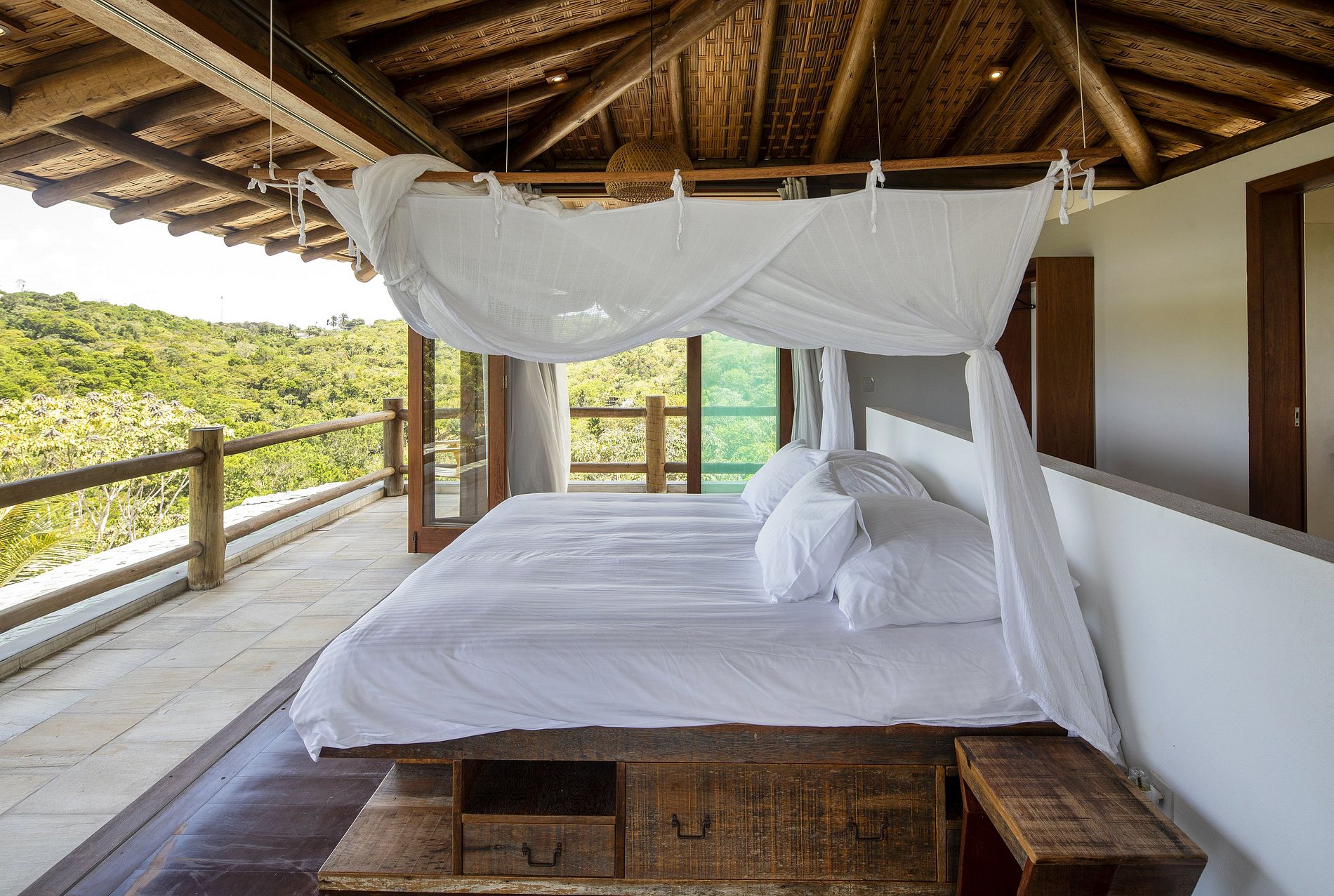 Suite principal: cama doble, aire acondicionado, balcón con vistas de 360º del bosque, la piscina, el río y el océano.