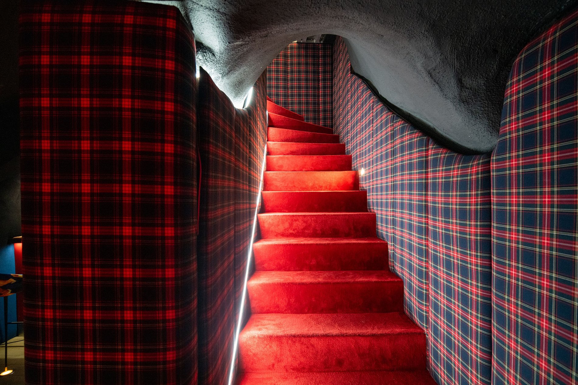 Sin embargo, el nivel del sótano se transforma en un espacio supremo de entretenimiento y ocio. Cuenta con una elegante área de bar, una pista de baile dedicada y dianas para diversión atractiva. Añadiendo al encanto, una cama grande y suntuosamente amueblada sirve como un espacio versátil, insinuando una relajación aventurera e indulgencias juguetonas, perfectas para el disfrute después de horas o como un espacio de huéspedes no convencional.