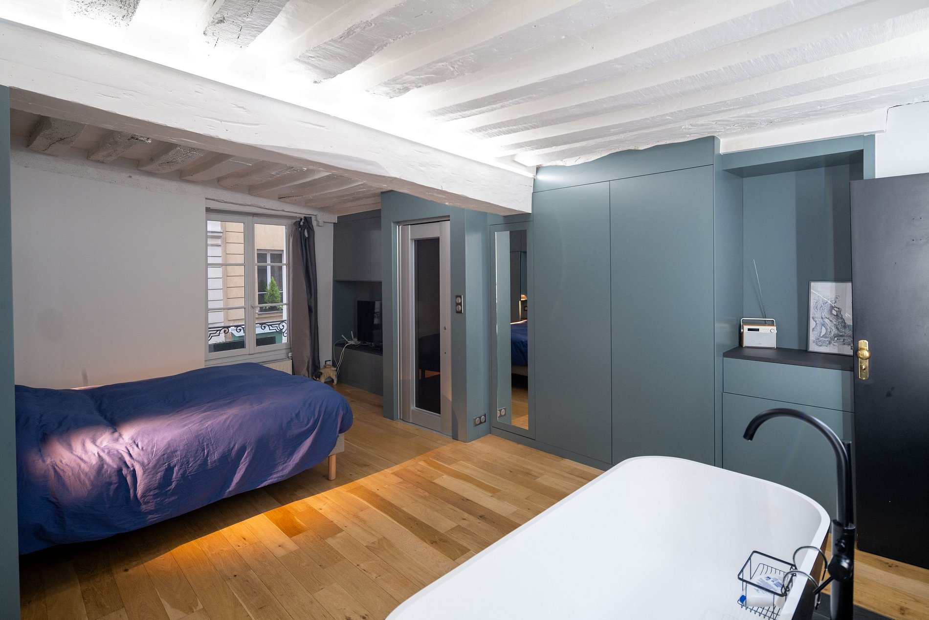 La planta baja presenta una deliciosa fusión de estilos rústicos y modernos. Las paredes de piedra original rinden homenaje a la rica historia de París, mientras que los elegantes muebles modernos añaden un toque de sofisticación. Este espacio acogedor, completo con una cocina de última generación, es perfecto para entretenerse y relajarse.