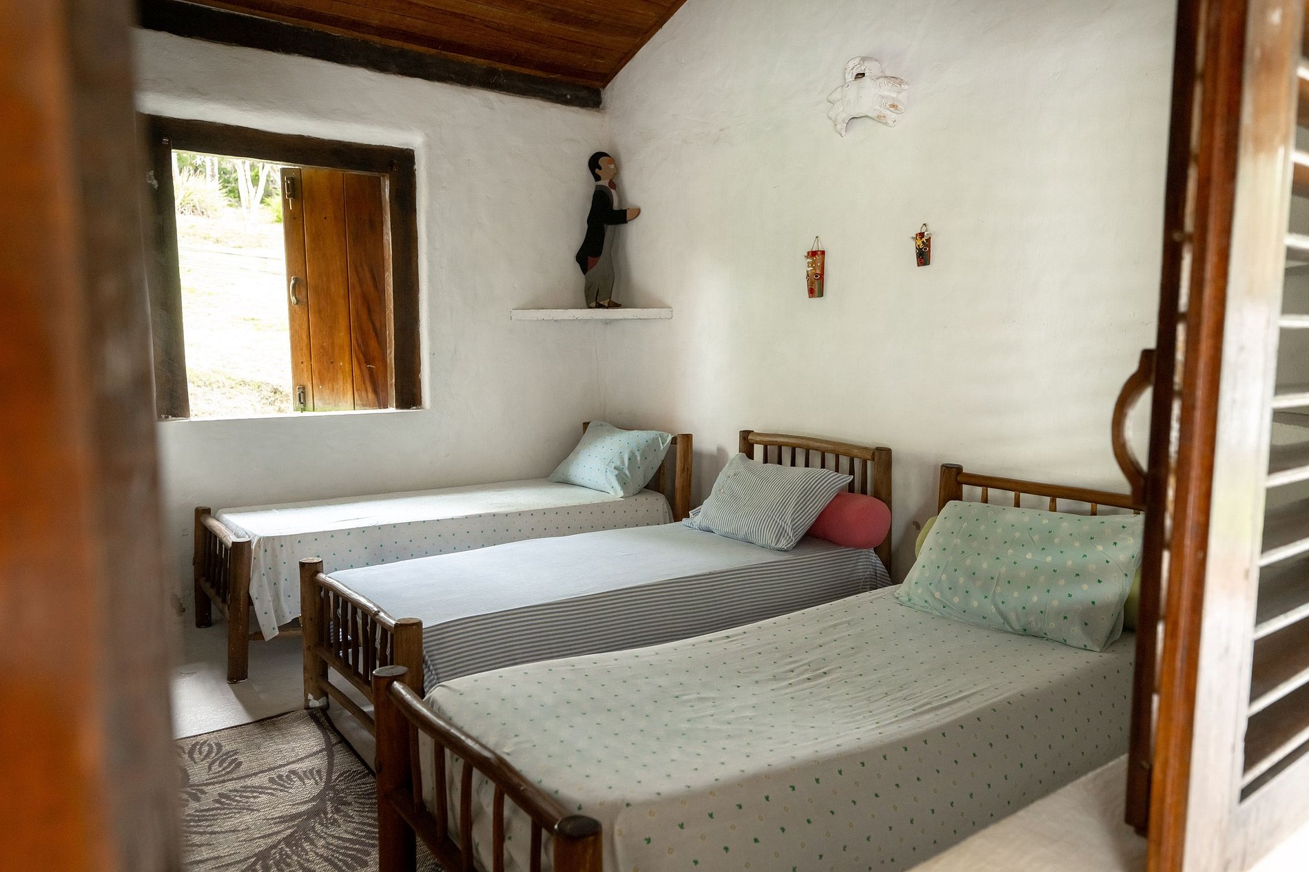 La propiedad dispone de 4 dormitorios, 2 de los cuales son suites y 2 dormitorios con cama de matrimonio y el otro con 3 camas individuales. Todas las habitaciones abren grandes ventanas de madera al balcón, con encantadores sofás y hamacas frente a cada suite. Tiene capacidad para 8 personas muy bien.