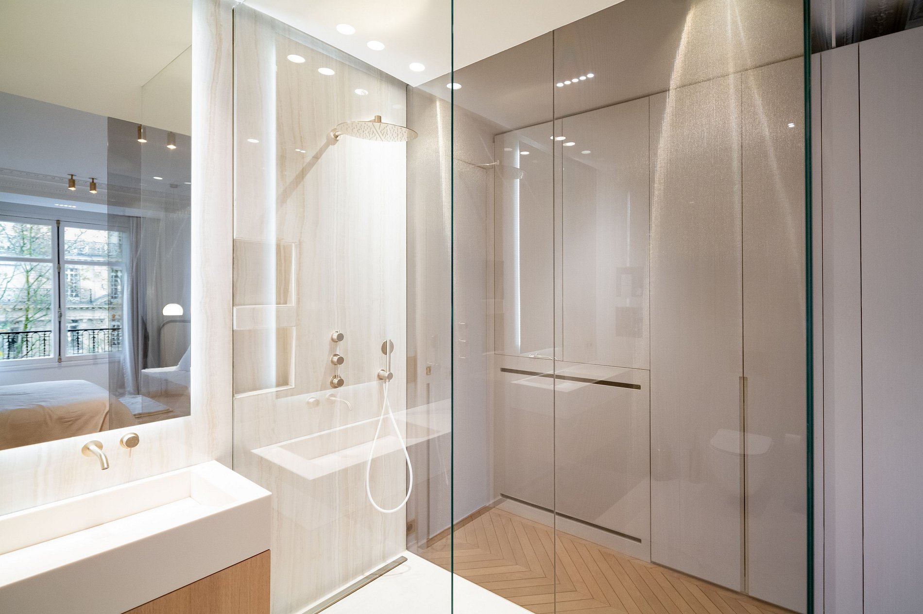 Experimente un lujo sin igual en este apartamento recién renovado de 200 m², perfectamente ubicado para su estancia durante las Olimpiadas de París 2024. Cada una de las tres opulentas habitaciones cuenta con baño privado, ofreciendo privacidad y confort a partes iguales.