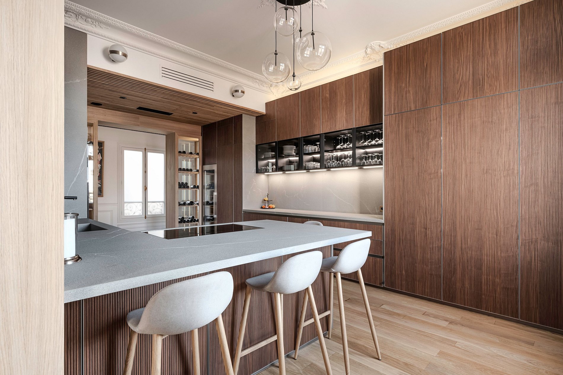 Este excepcional apartamento de 300 m2, situado en un edificio haussmanniano de gran prestigio, ofrece un espectáculo urbano impresionante con su balcón corrido que ofrece vistas directas al Arco del Triunfo en el norte y a la Torre Eiffel en el sur.