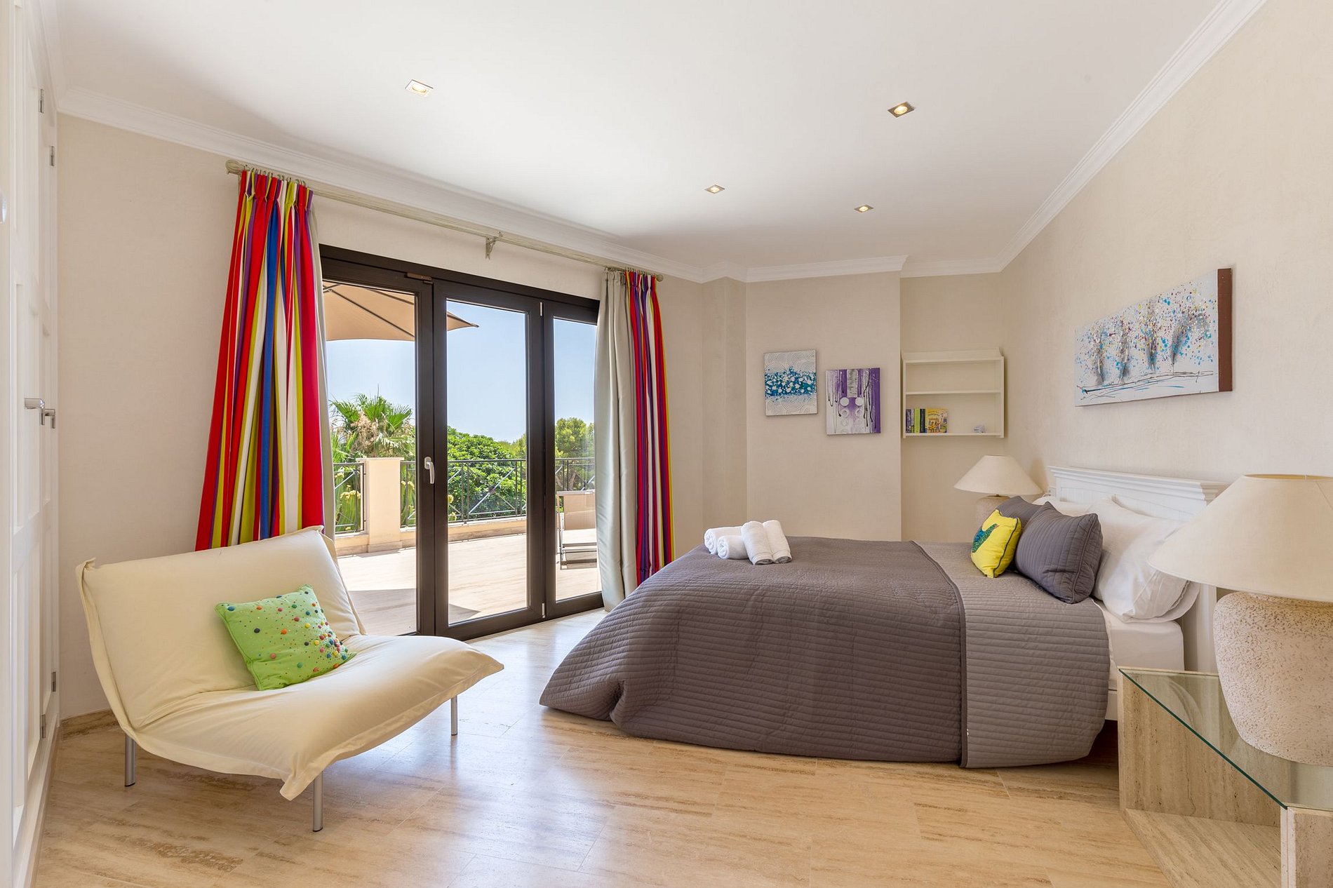 450 metros cuadrados de Villa con capacidad para 10 personas en 5 habitaciones dobles. Todo está decorado con buen gusto y una cocina abierta totalmente equipada invita a los huéspedes a cocinar juntos.