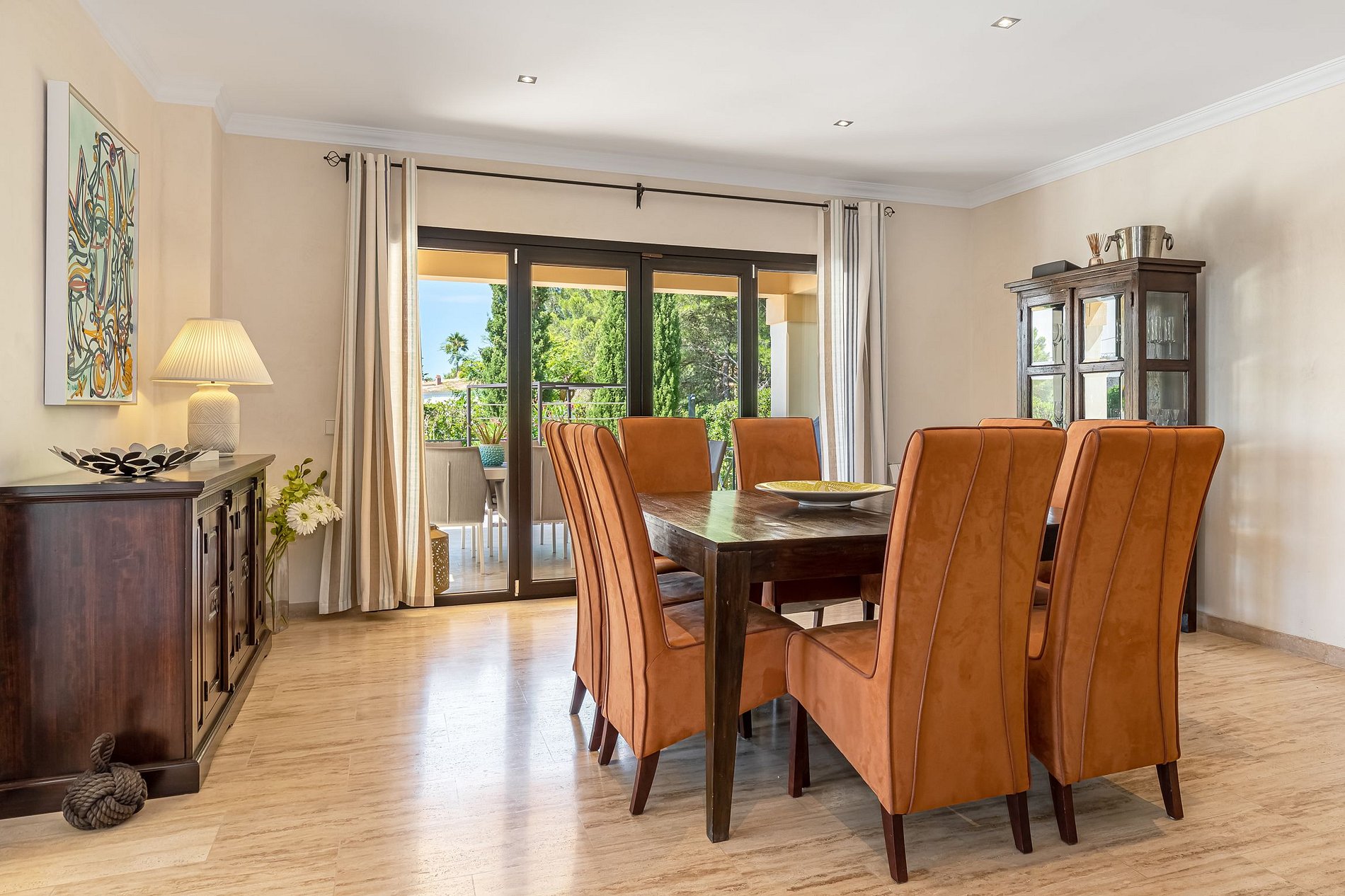 450 metros cuadrados de Villa con capacidad para 10 personas en 5 habitaciones dobles. Todo está decorado con buen gusto y una cocina abierta totalmente equipada invita a los huéspedes a cocinar juntos.