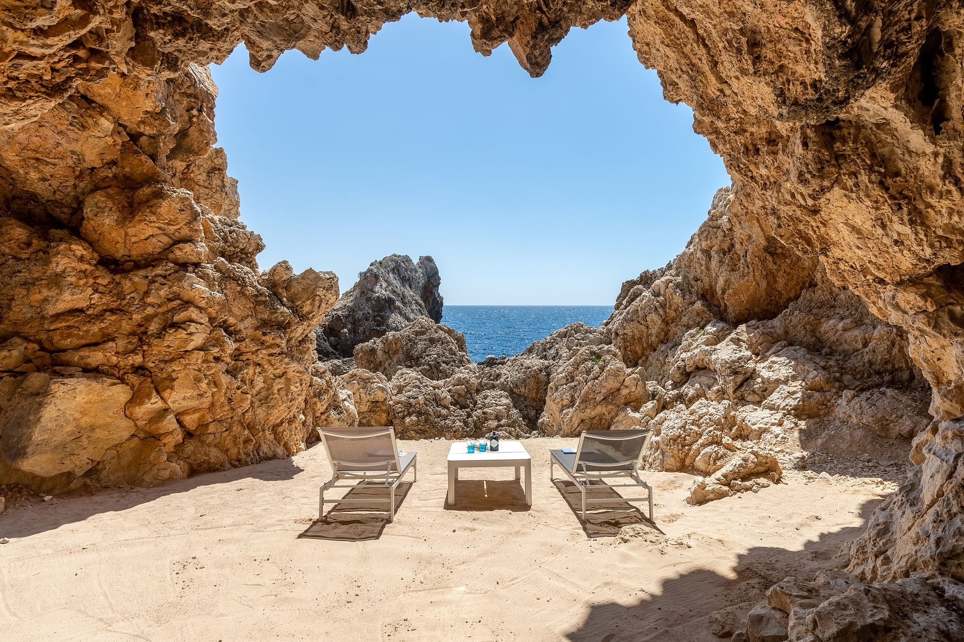 Villa tiene algunos aspectos destacados especiales al aire libre para ofrecer, como una playa de arena privada con acceso al mar y una gruta aislada con bar en la playa, que son el lugar perfecto para disfrutar de inolvidables puestas de sol.