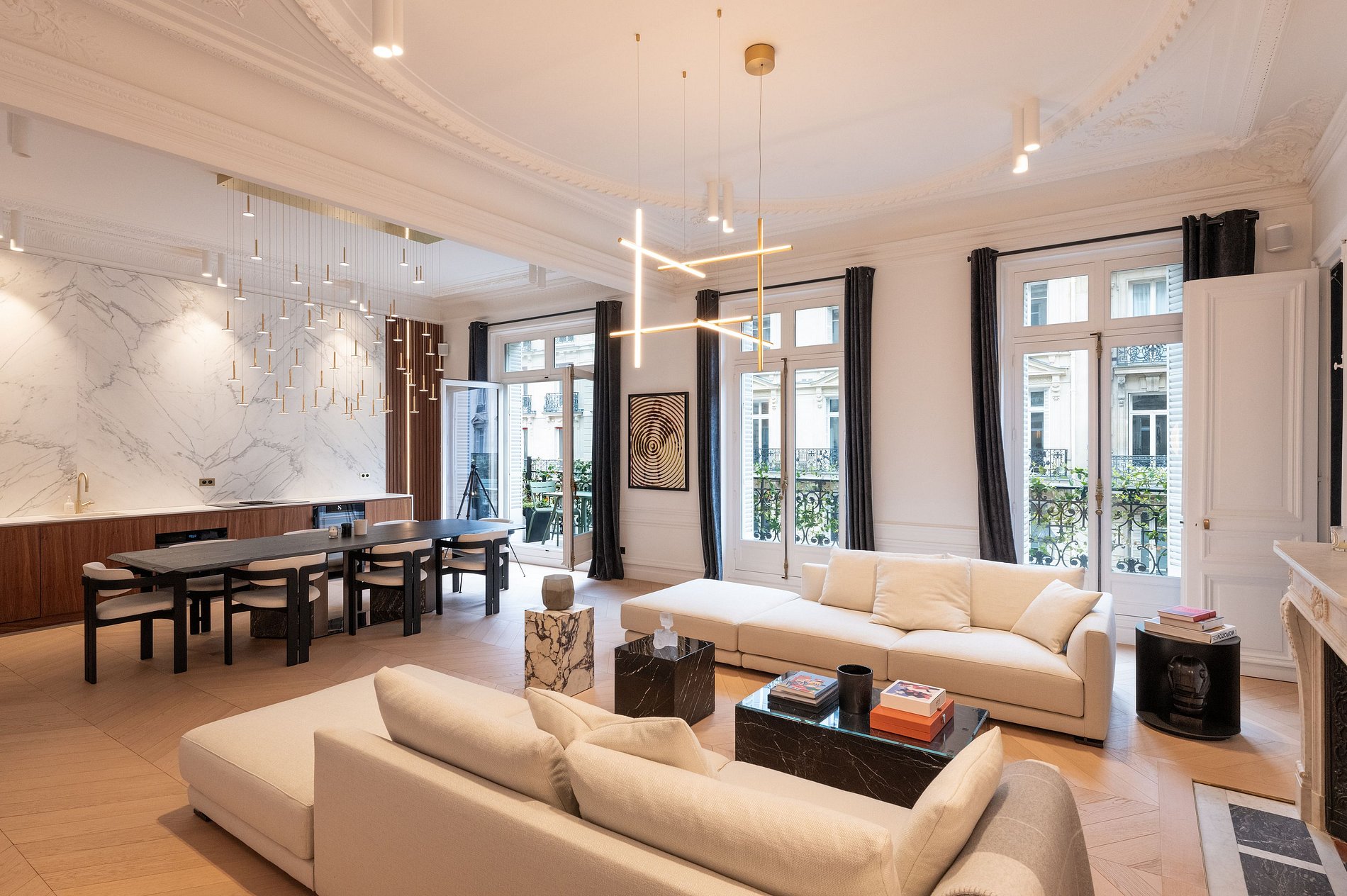Este lujoso apartamento de 160 m², ubicado en el prestigioso distrito de Palais Royal, es un ejemplo de elegancia urbana y confort. Una de sus características principales es un balcón de 15 m², adornado con una pequeña mesa, perfecto para disfrutar de una bebida mientras se contempla la impresionante vista de una parte del Louvre y los exuberantes Jardines de las Tullerías.