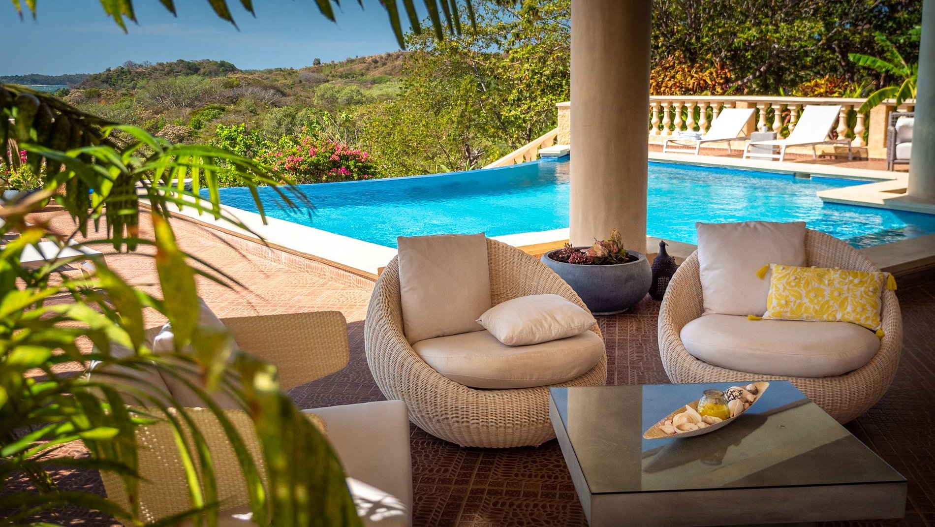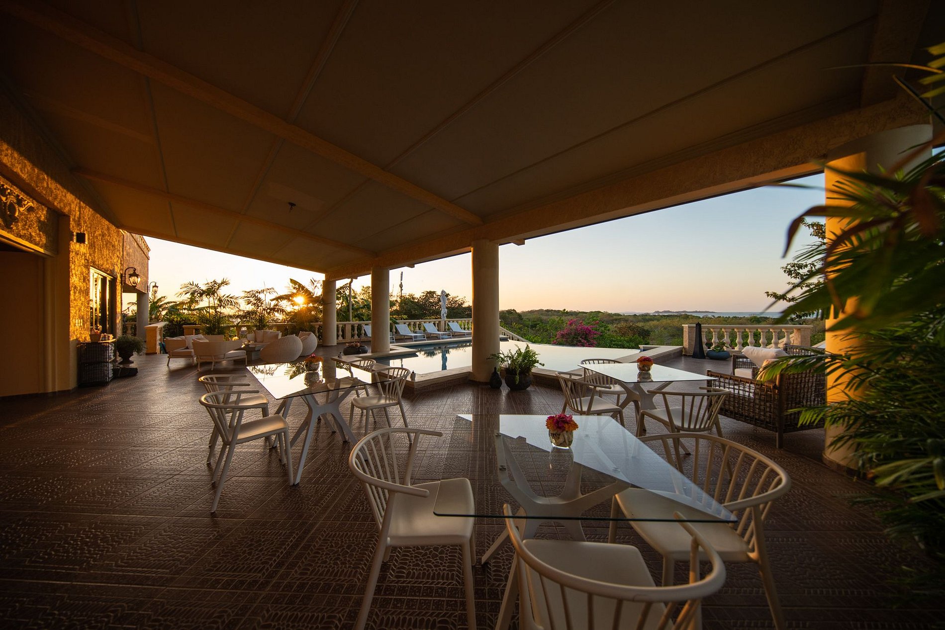 Por la noche, maravíllese con los fascinantes atardeceres desde la terraza, con amplias vistas de la exuberante naturaleza y el océano.