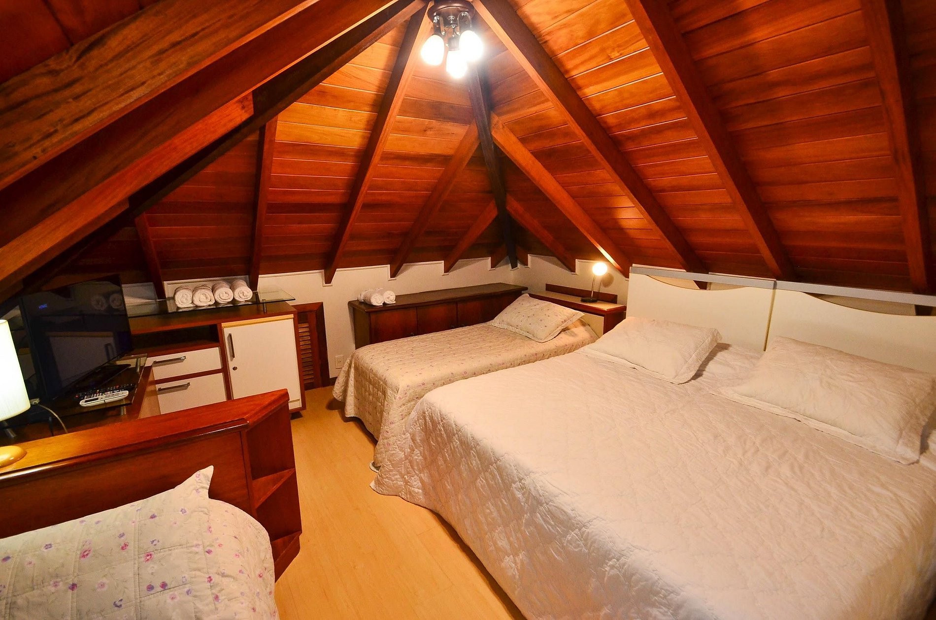 El interior de la casa es impactante, con amplias áreas sociales que incluyen una acogedora sala de televisión equipada con chimenea, perfecta para noches frías y momentos de ocio en familia o con amigos. El encanto especial proviene del dormitorio abuhardillado, que con su techo de madera proporciona un ambiente único, con una cama de matrimonio y 3 camas individuales.