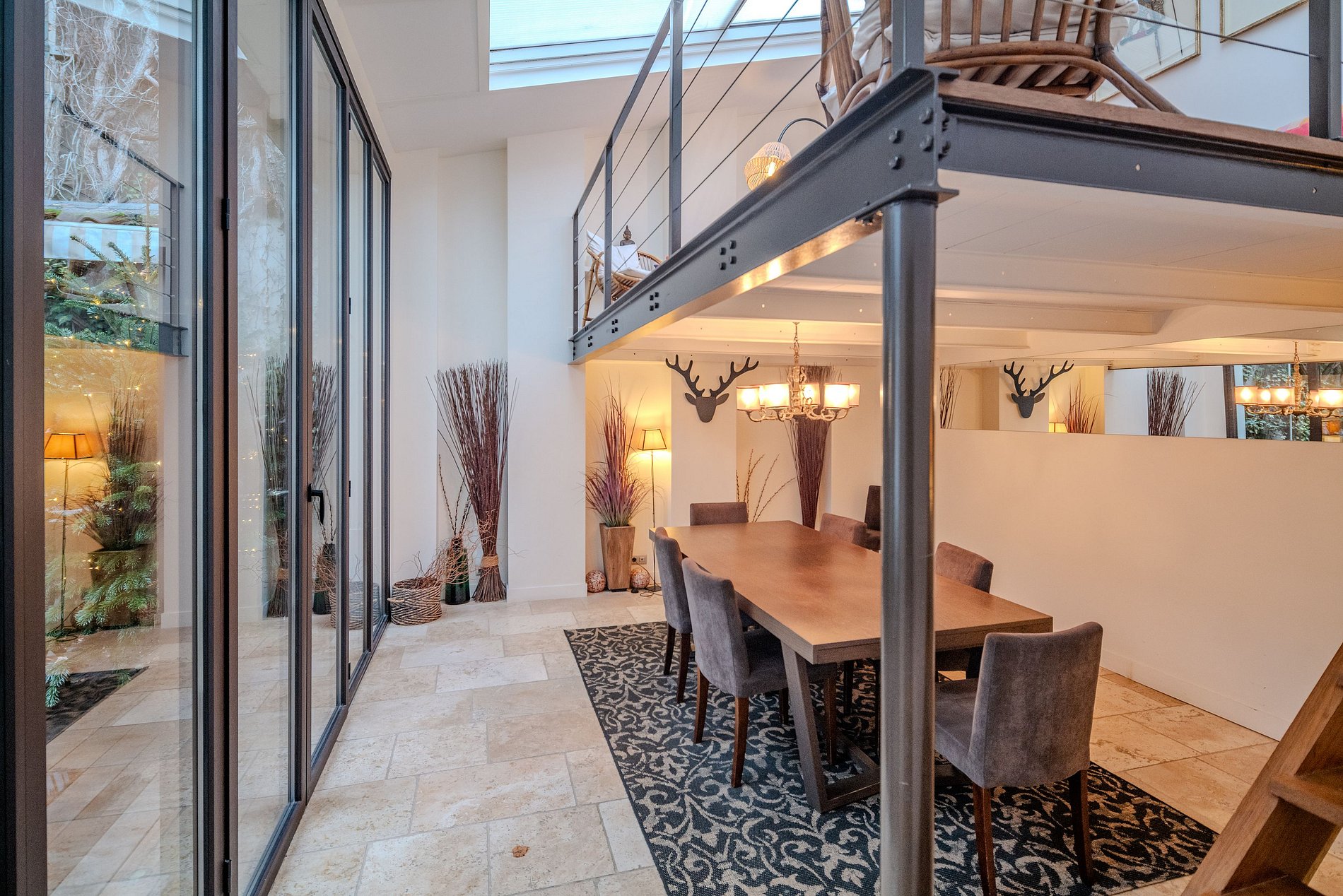 Por encima del área de comedor, un acogedor salón ofrece un lugar perfecto para relajación y socialización. Es un espacio acogedor que añade una capa extra de confort al hogar.