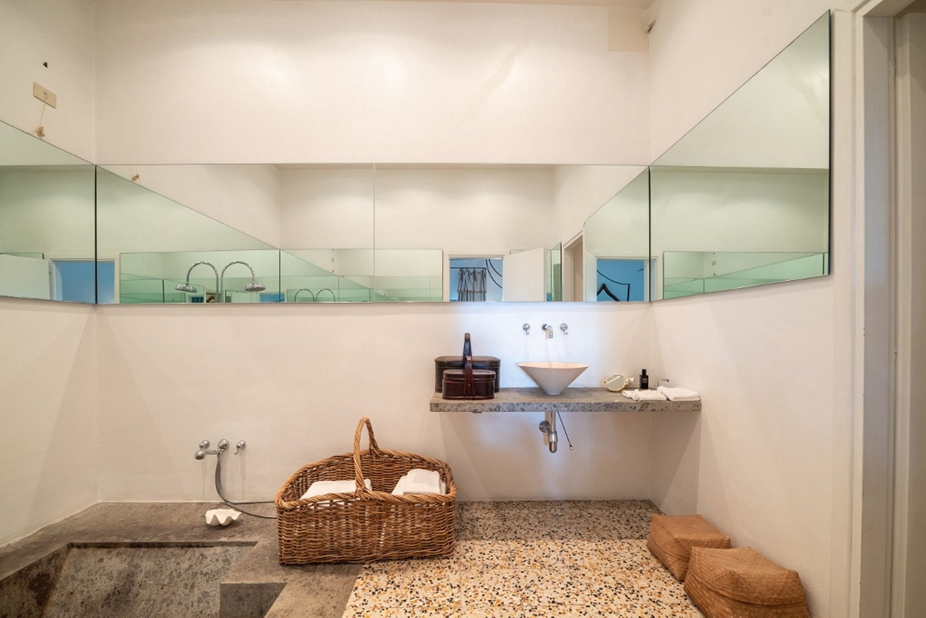 La zona exterior cuenta con una terraza con espacios para sentarse a trabajar, comer o relajarse, así como una piscina.