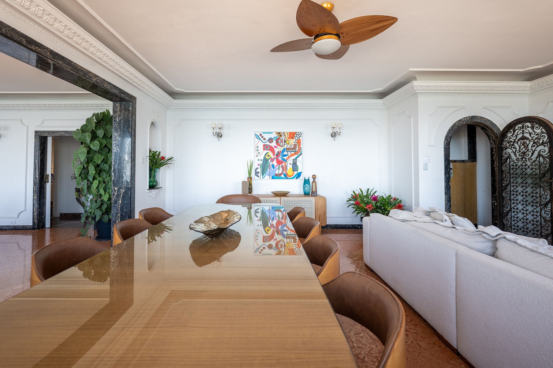 Este departamento elegante frente al mar, ubicado sobre la Avenida Atlântica en el tradicional Posto 6, ofrece una experiencia residencial de alto nivel en una de las direcciones más prestigiosas de Copacabana. Los ambientes son amplios, luminosos y diseñados con atención al detalle, con grandes ventanales que brindan una vista directa y continua al mar.