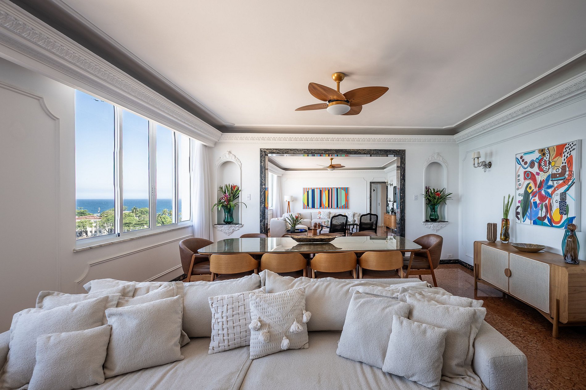 Este departamento elegante frente al mar, ubicado sobre la Avenida Atlântica en el tradicional Posto 6, ofrece una experiencia residencial de alto nivel en una de las direcciones más prestigiosas de Copacabana. Los ambientes son amplios, luminosos y diseñados con atención al detalle, con grandes ventanales que brindan una vista directa y continua al mar.