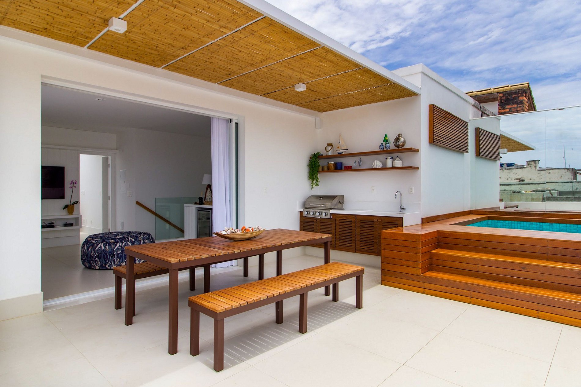 Directamente desde la terraza descubierta podrá hacer una apetitosa barbacoa y disfrutar de un buen vino que acaba de recoger de la cava climatizada del salón de al lado. Todo esto posado en el deck de la piscina disfrutando de la incomparable vista al mar al atardecer. ¡Una experiencia fantástica!