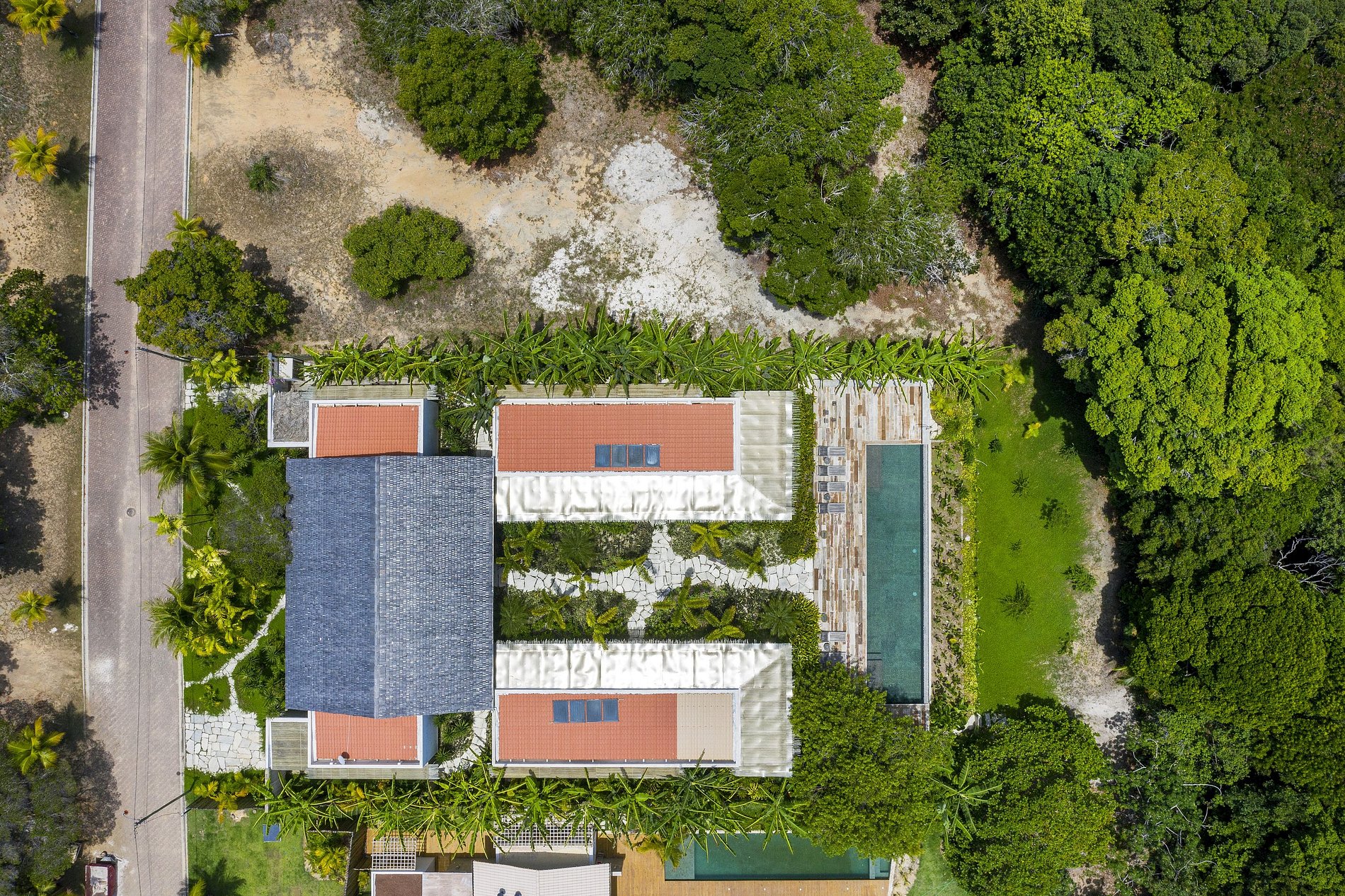Las vastas áreas sociales abarcan un lujoso jardín tropical que conduce sensualmente a una piscina infinita abierta en la jungla.