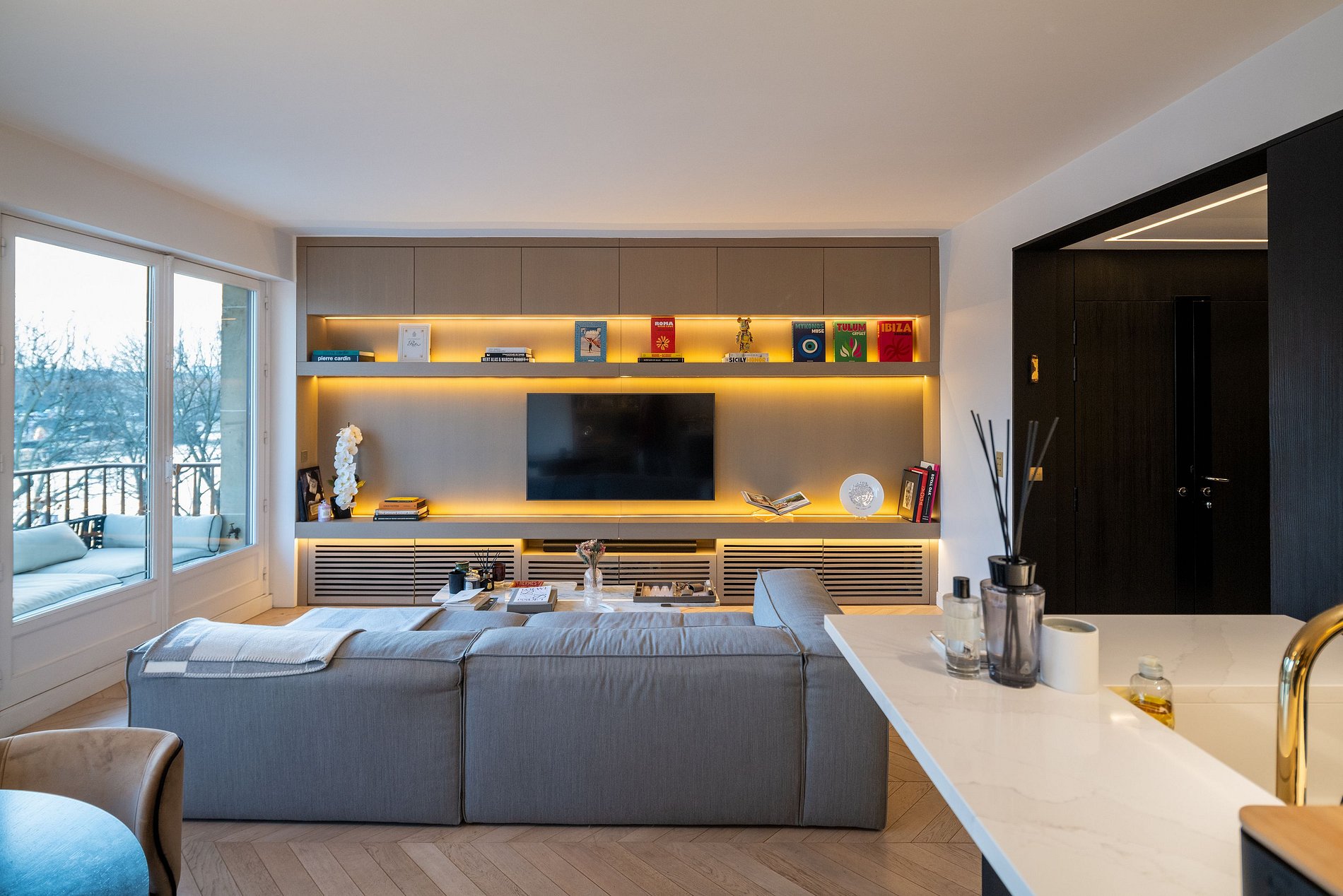 Este exquisito apartamento de 65 m² es una obra maestra del diseño de interiores, reflejando el ambiente lujoso de una suite de hotel de alta gama.