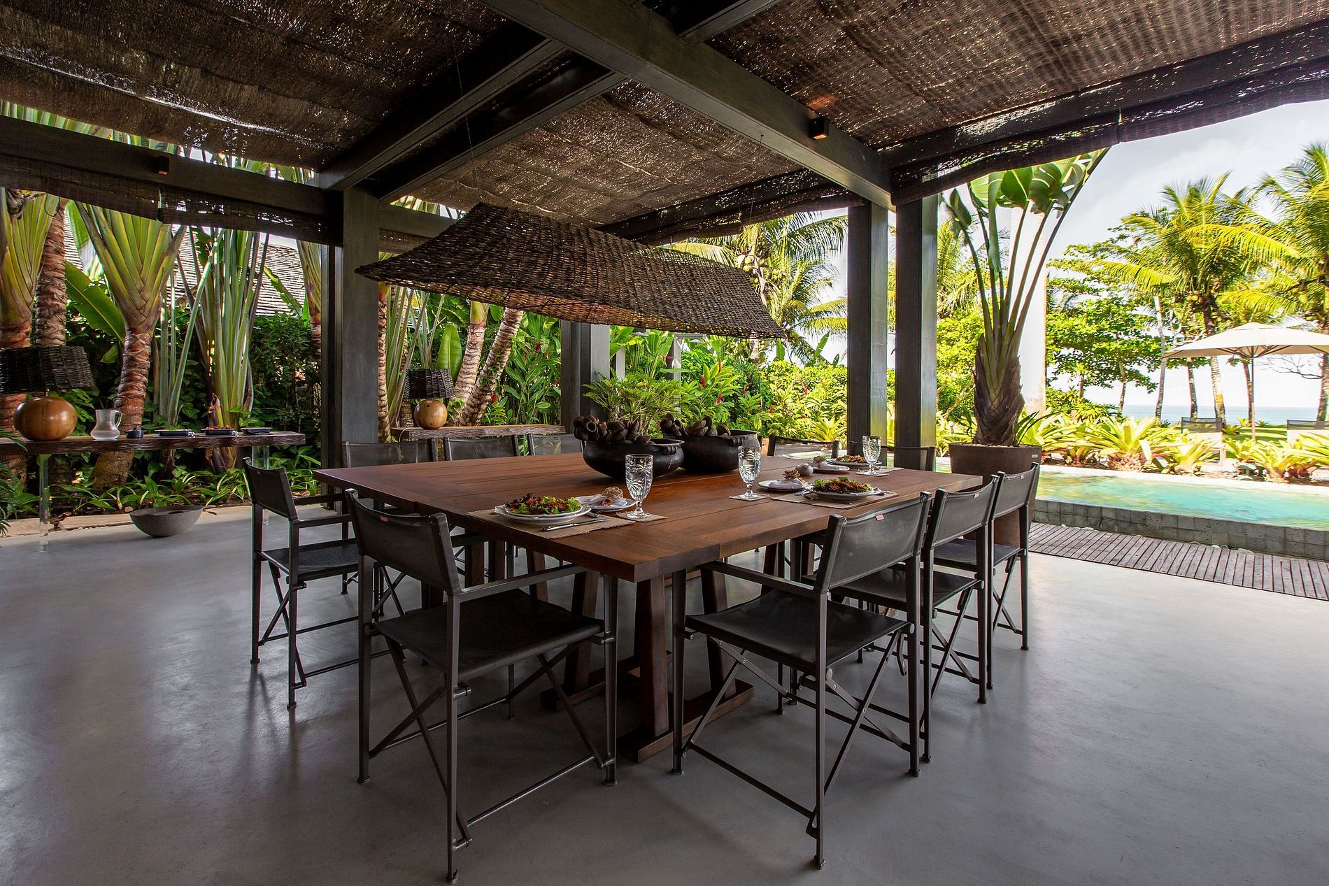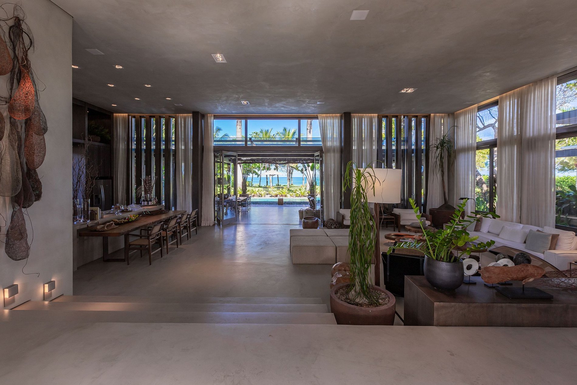 La villa consta de 2 niveles. El primero tiene la sala, medio baño, el comedor, cocina operativa y cocina gourmet. Este ambiente tiene una altura de techo de 5 metros. Tiene vistas a la piscina y vistas al mar. El segundo nivel comprende las suites y el lavadero. Este piso tiene una vista lateral que da al área preservada del condominio, brindando a los huéspedes total privacidad.
