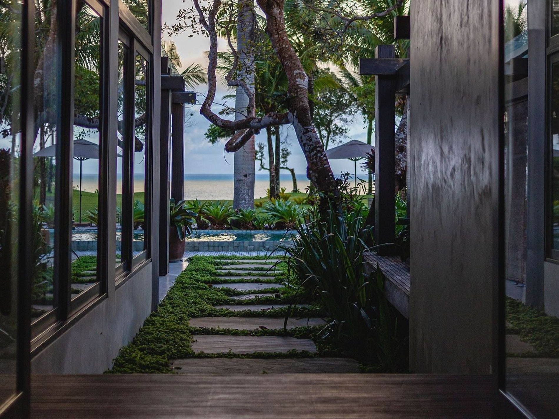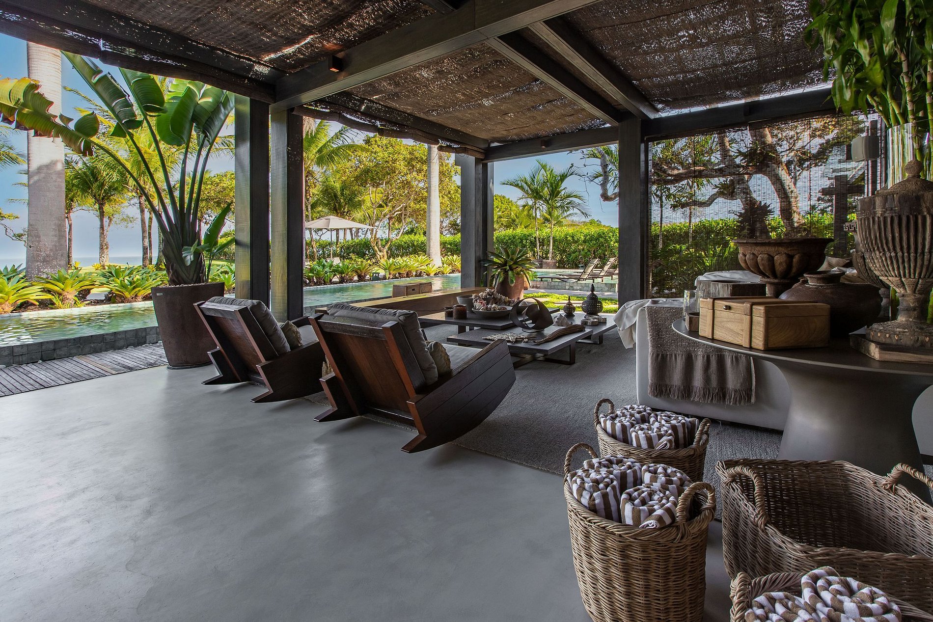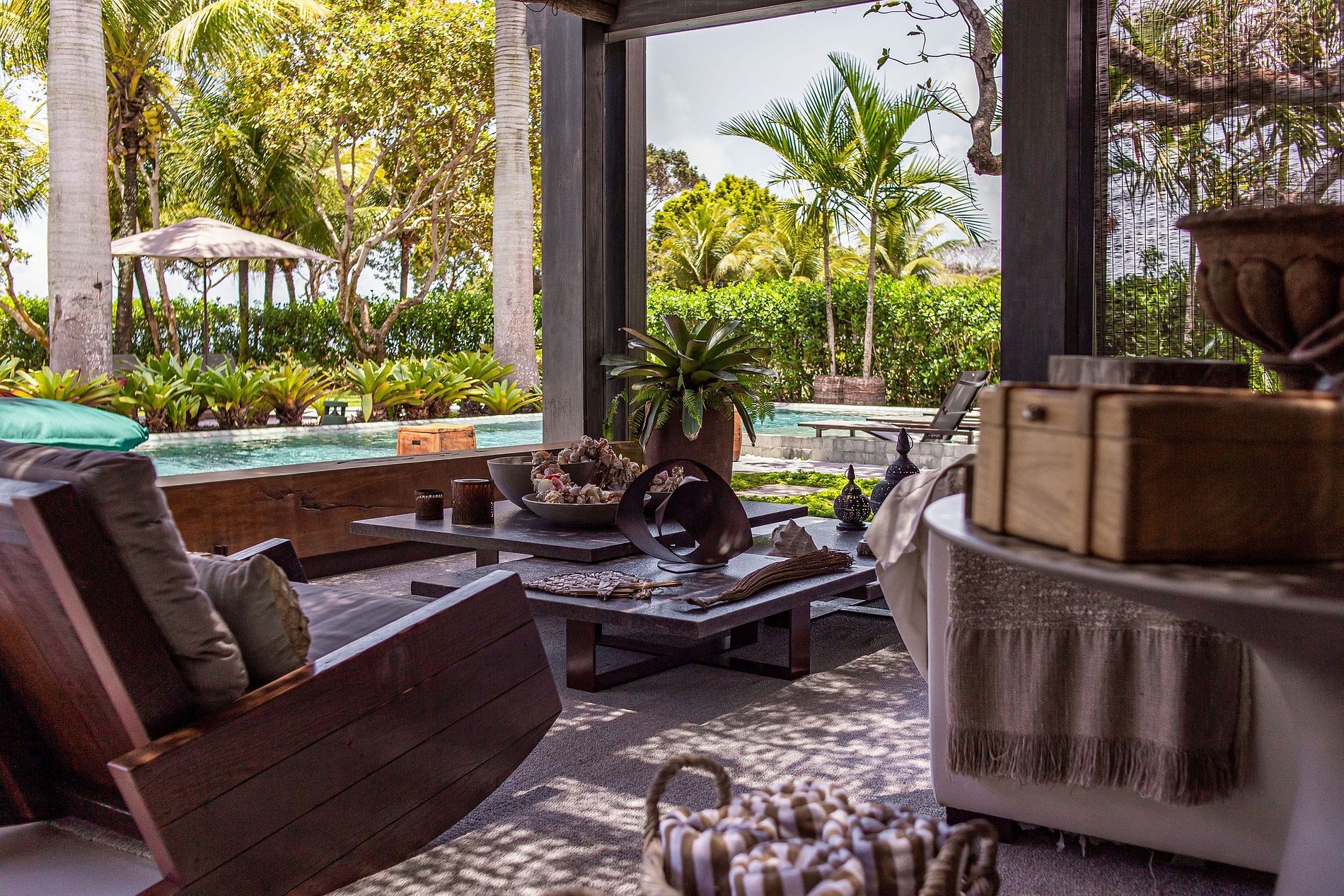 La villa consta de 2 niveles. El primero tiene la sala, medio baño, el comedor, cocina operativa y cocina gourmet. Este ambiente tiene una altura de techo de 5 metros. Tiene vistas a la piscina y vistas al mar. El segundo nivel comprende las suites y el lavadero. Este piso tiene una vista lateral que da al área preservada del condominio, brindando a los huéspedes total privacidad.