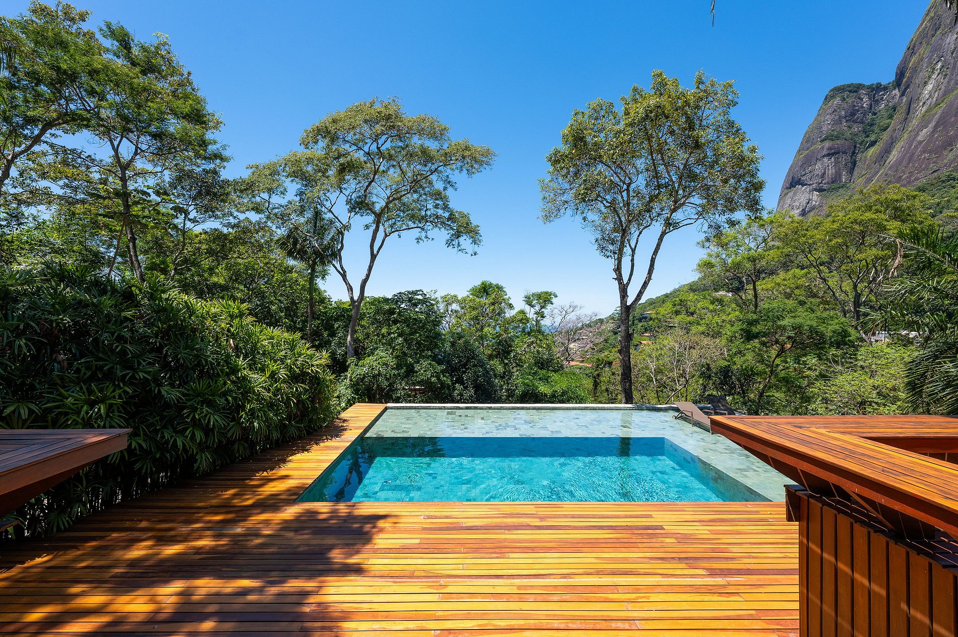 Construida con materiales de alta calidad y decorada con gran gusto, esta villa combina elegancia contemporánea, confort absoluto y una inmersión total en la naturaleza carioca.