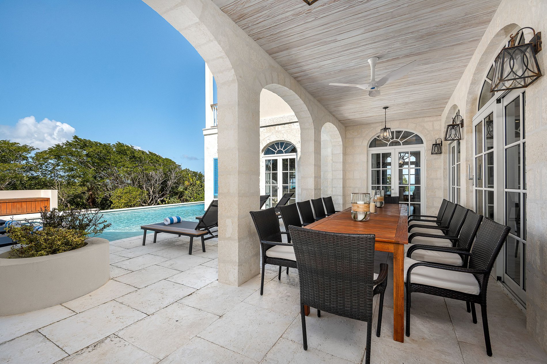 Ubicada en la encantadora zona de Turtle Cove en Grace Bay, esta elegante villa de seis habitaciones ofrece una combinación serena de diseño tradicional y comodidad isleña, a solo unos pasos de la playa. Rodeada de vegetación tropical, la casa cuenta con amplias terrazas envolventes, arcos de piedra elegantes y vistas tranquilas al mar turquesa desde casi todos los ángulos.