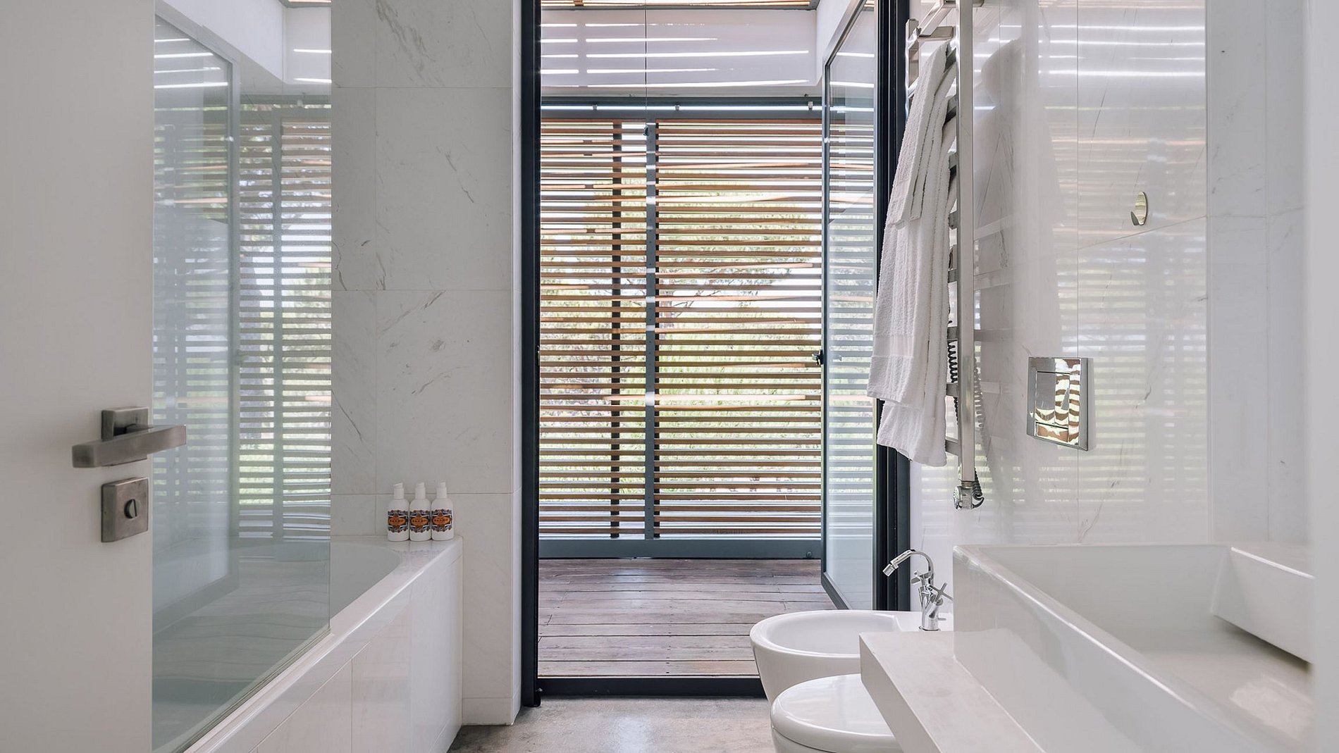 Esta casa de Comporta tiene que ver con la luz: disfrutará de su hermosa luz natural durante todo el día. Cierra las contraventanas de madera al mediodía y aprecie las fuertes franjas de sombra que caen por la habitación. Por la noche, observe cómo los rayos de la luna iluminan el espacio a través de los tragaluces en el techo alto y las ventanas de vidrio de gran tamaño.