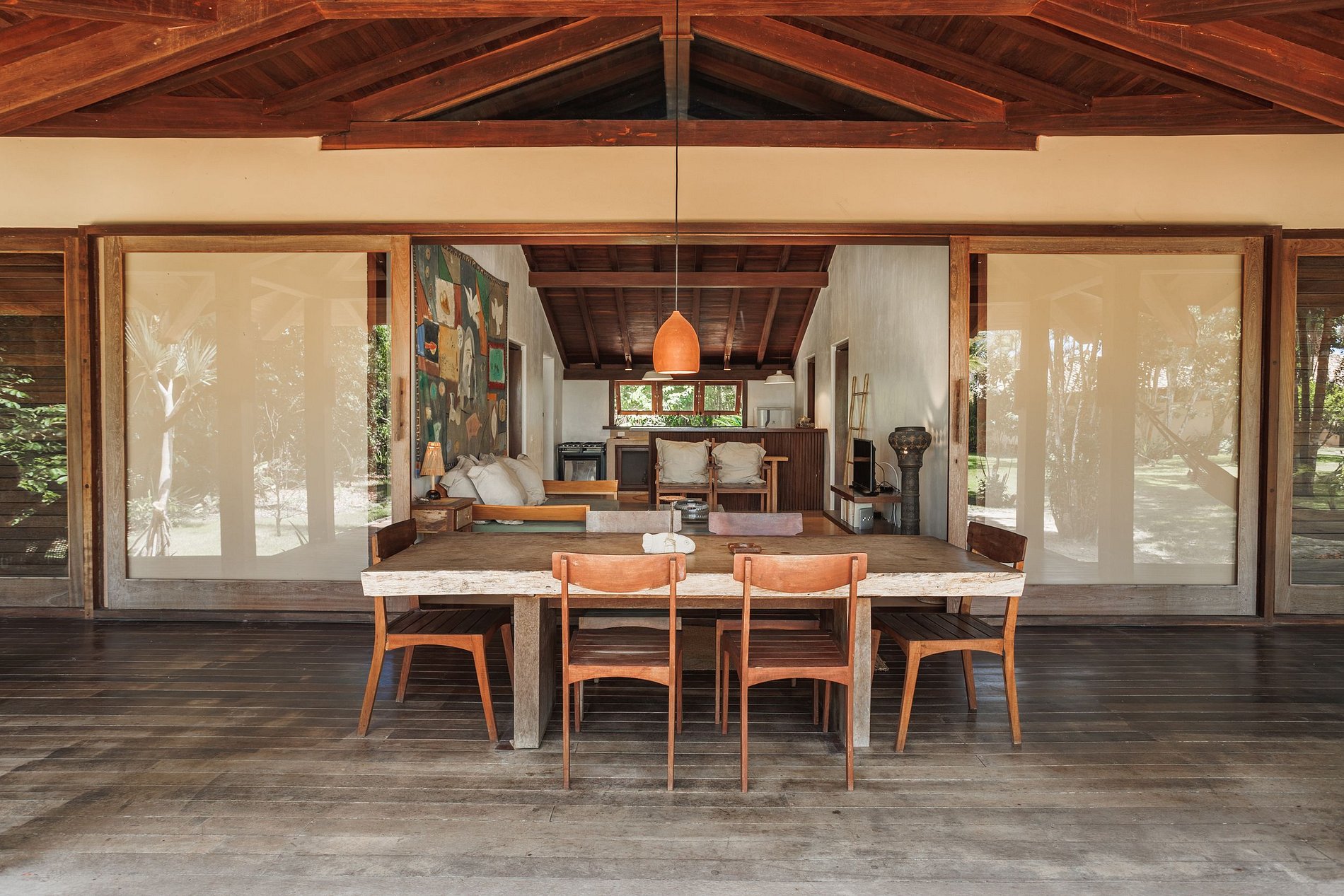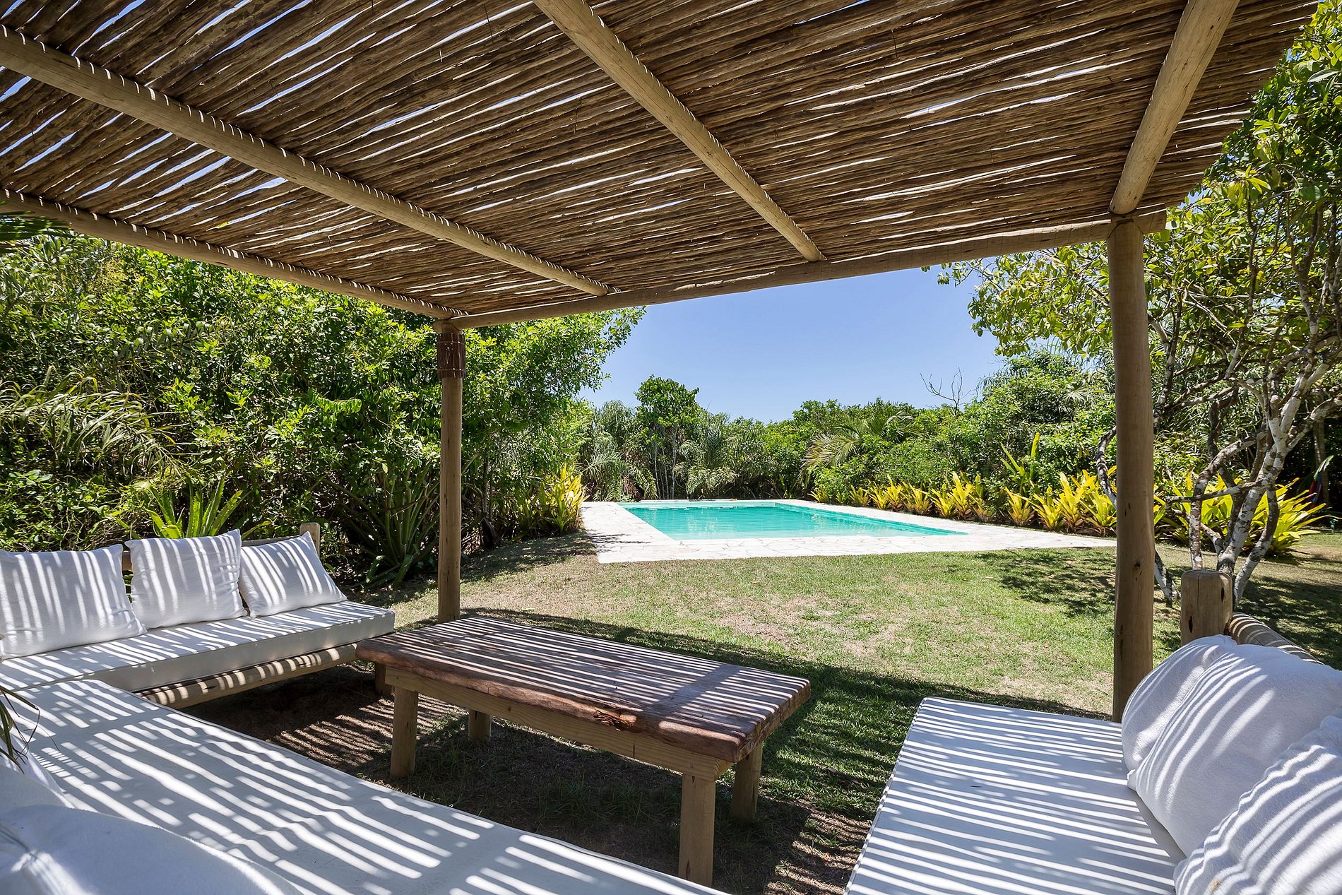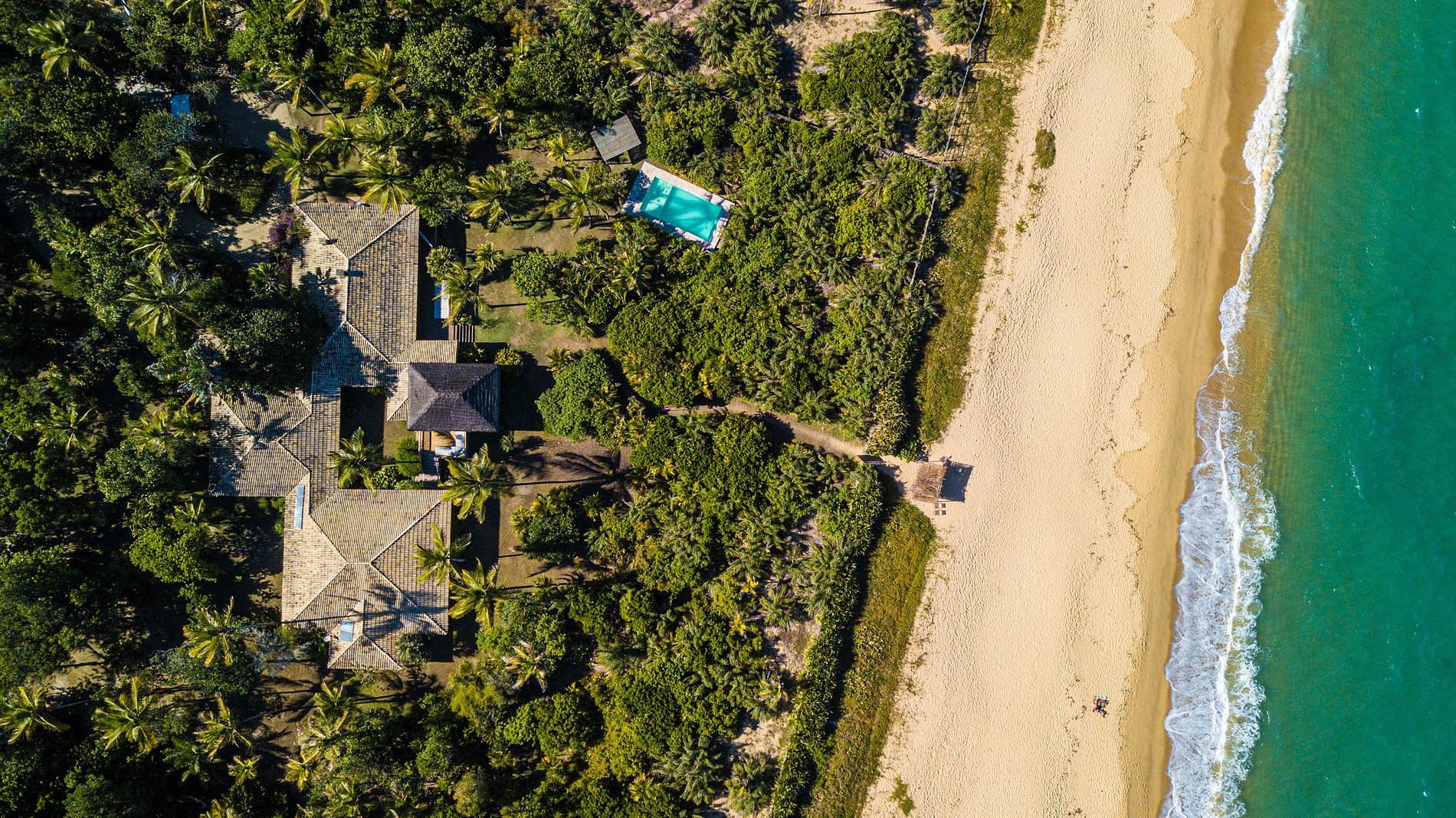 Acogedora casa, con piscina, iluminada, sobre la arena, en la playa de Itapororoca. Es el primero dentro del Condominio Itapororoca, a sólo dos kilómetros de la Plaza Histórica de Trancoso, a 100 metros del Río Verde. El terreno cuenta con un cocotal lleno de otras especies de vegetación nativa, tiene una superficie de 12.400 m² y 80 metros de frente de playa.