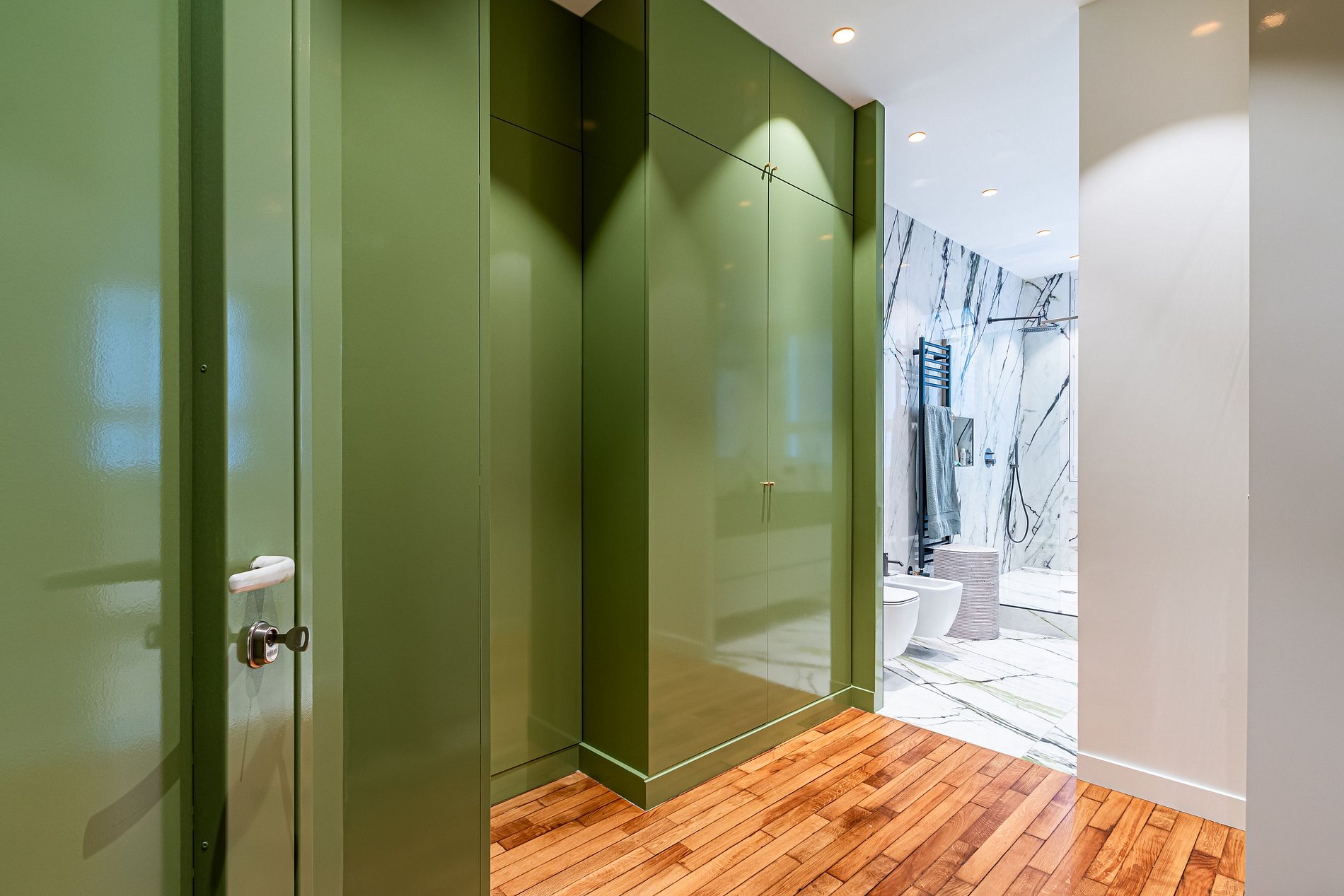 El apartamento cuenta con cuatro dormitorios, ofreciendo flexibilidad y privacidad para residentes e invitados por igual. Dos de los dormitorios son en suite, proporcionando lujosos retiros para relajación y privacidad. Estas suites principales están diseñadas teniendo en cuenta la comodidad, con amplio espacio, luz natural y acabados de alta calidad. Los otros dos dormitorios están igualmente bien equipados y comparten acceso a un baño bellamente diseñado, asegurando que todos tengan el espacio y las comodidades que necesitan.