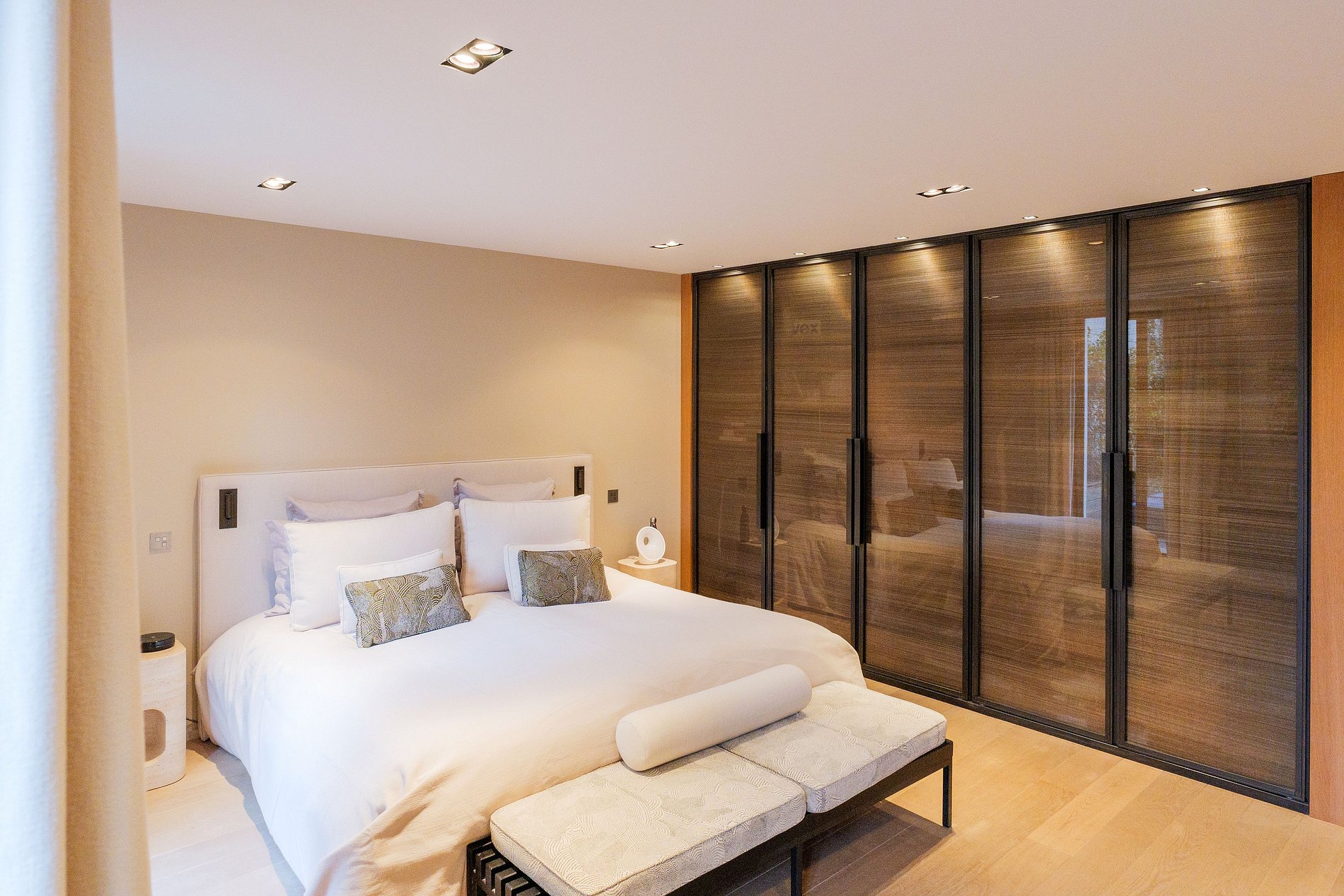 El apartamento alberga una suntuosa suite principal, ofreciendo privacidad y confort, con una vista impresionante del jardín. Las otras dos habitaciones, espaciosas y luminosas, comparten un baño moderno y elegante, asegurando comodidad y funcionalidad para todos los residentes.