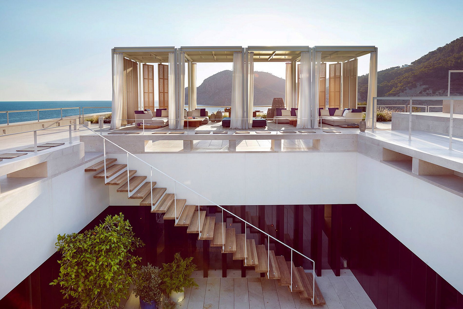 Integrándose perfectamente con la belleza natural prístina de Ibiza, la isla está conectada al continente por una playa única de dos lados, ofreciendo vistas majestuosas al mar. La joya de la corona, una terraza en la azotea de 750 m², está equipada con dos bares, pérgolas sombreadas, una consola de DJ y un área de escenario, preparando el escenario para momentos inolvidables bajo el cielo de Ibiza.