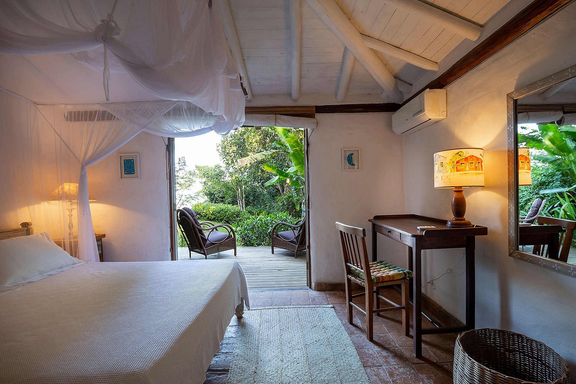 Las otras dos suites tienen terraza con acceso directo a la piscina o al jardín tropical.Los espacios de vida interiores y exteriores están abiertos sobre el océano, beneficiándose de la suave brisa del mar. Decorado con artes y artesanía local, el encanto de esta casa histórica es único.