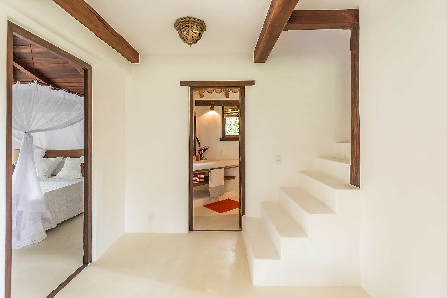 Una de las casas pero delicadas de Trancoso. Líneas escuradas, gran espacio luminoso, trabajo artesanal delicado, intimidad y confort.
