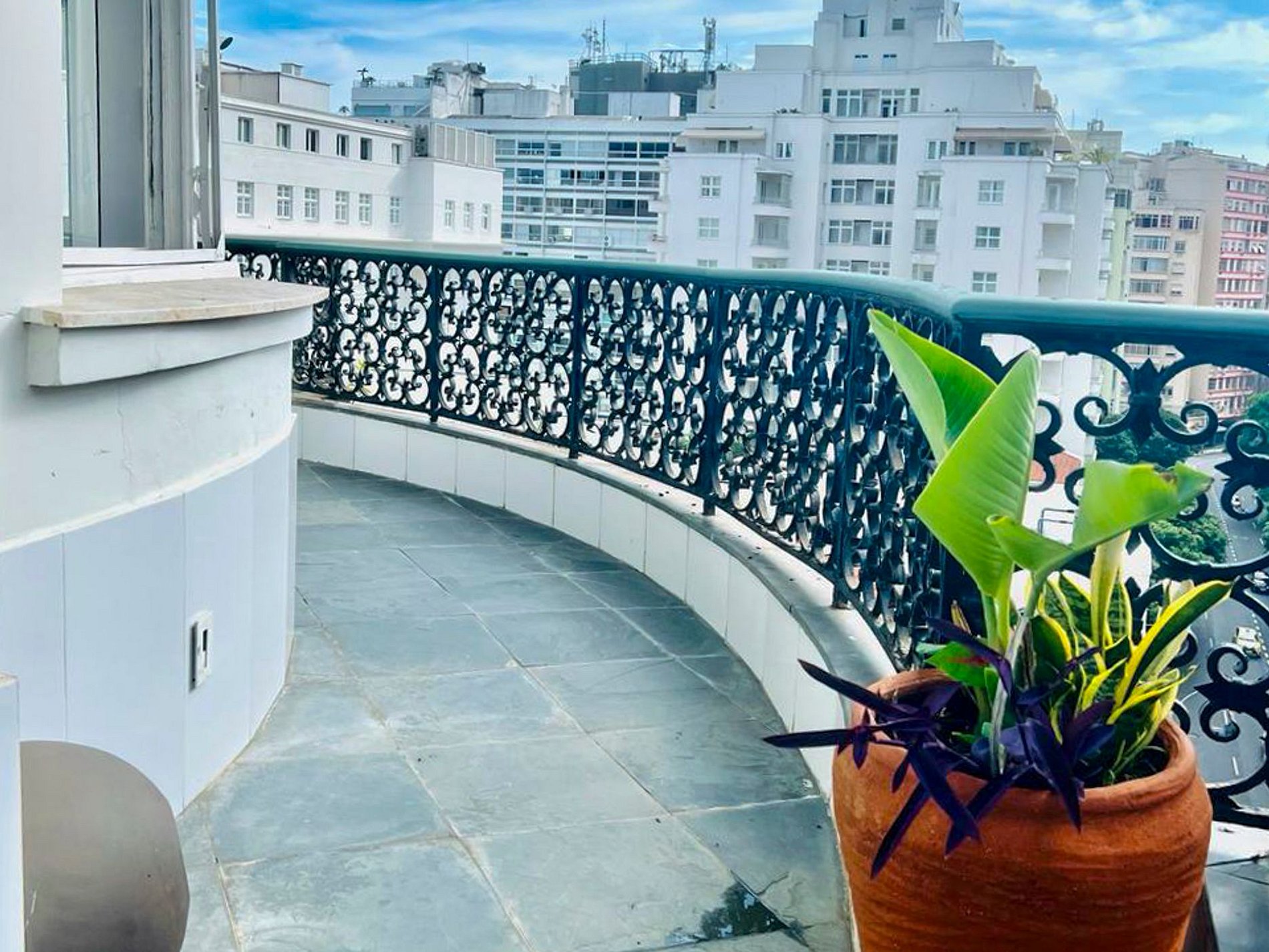 Amplia y elegantemente distribuida en 244 m², esta propiedad destaca por su balcón de 42 m² que se extiende por toda la fachada, ofreciendo impresionantes vistas a la cancha de tenis y a la cúpula de la ópera del Palacio de Copacabana, además de una encantadora vista lateral a la playa.