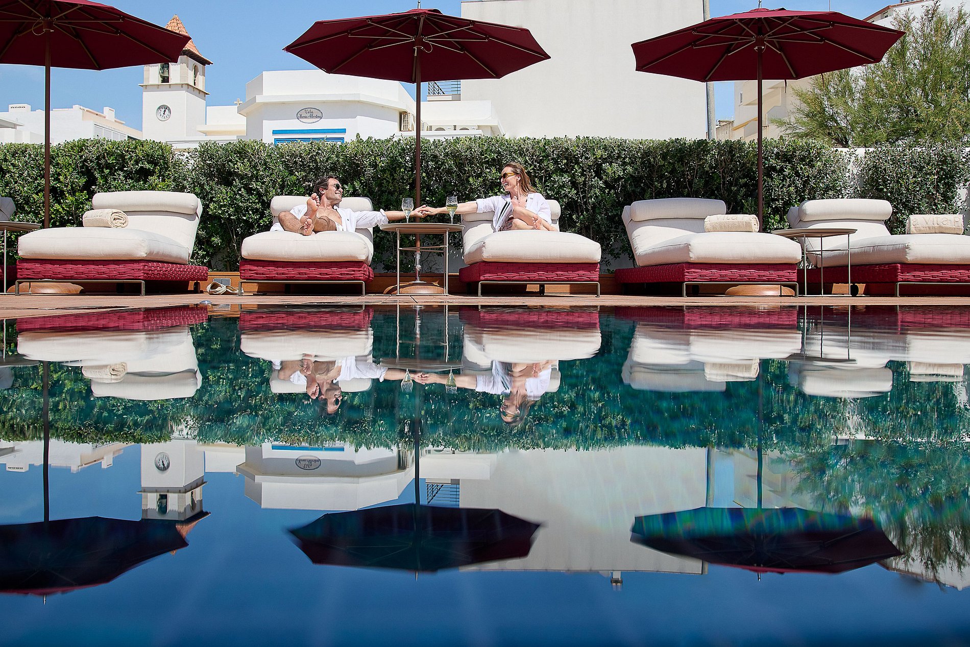 La terraza construida sobre el antiguo muro marítimo parece flotar sobre el mar. El espacio exterior cuenta con piscina climatizada, terraza solárium, y una zona de bienestar con sala de tratamientos y sauna — el escenario perfecto para momentos especiales con amigos o familia.