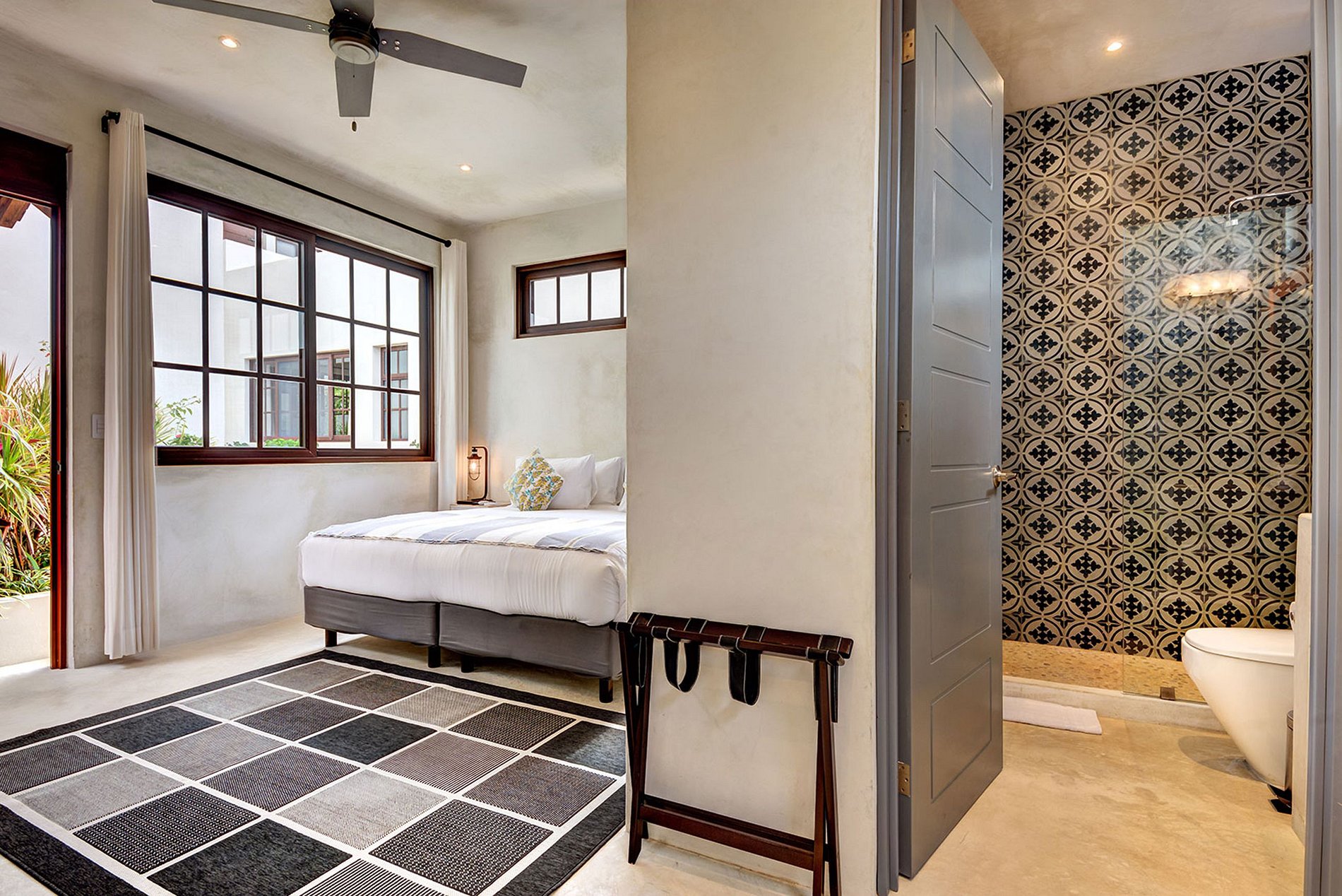 Regrese por el patio y siga una característica ecléctica del agua que conduce a una habitación familiar y una litera. Ambos tienen entradas separadas con un baño conectado impresionantemente decorado con extraordinarios azulejos hechos a mano. Estas habitaciones proporcionan la mayor serenidad de todos los espacios de la casa.