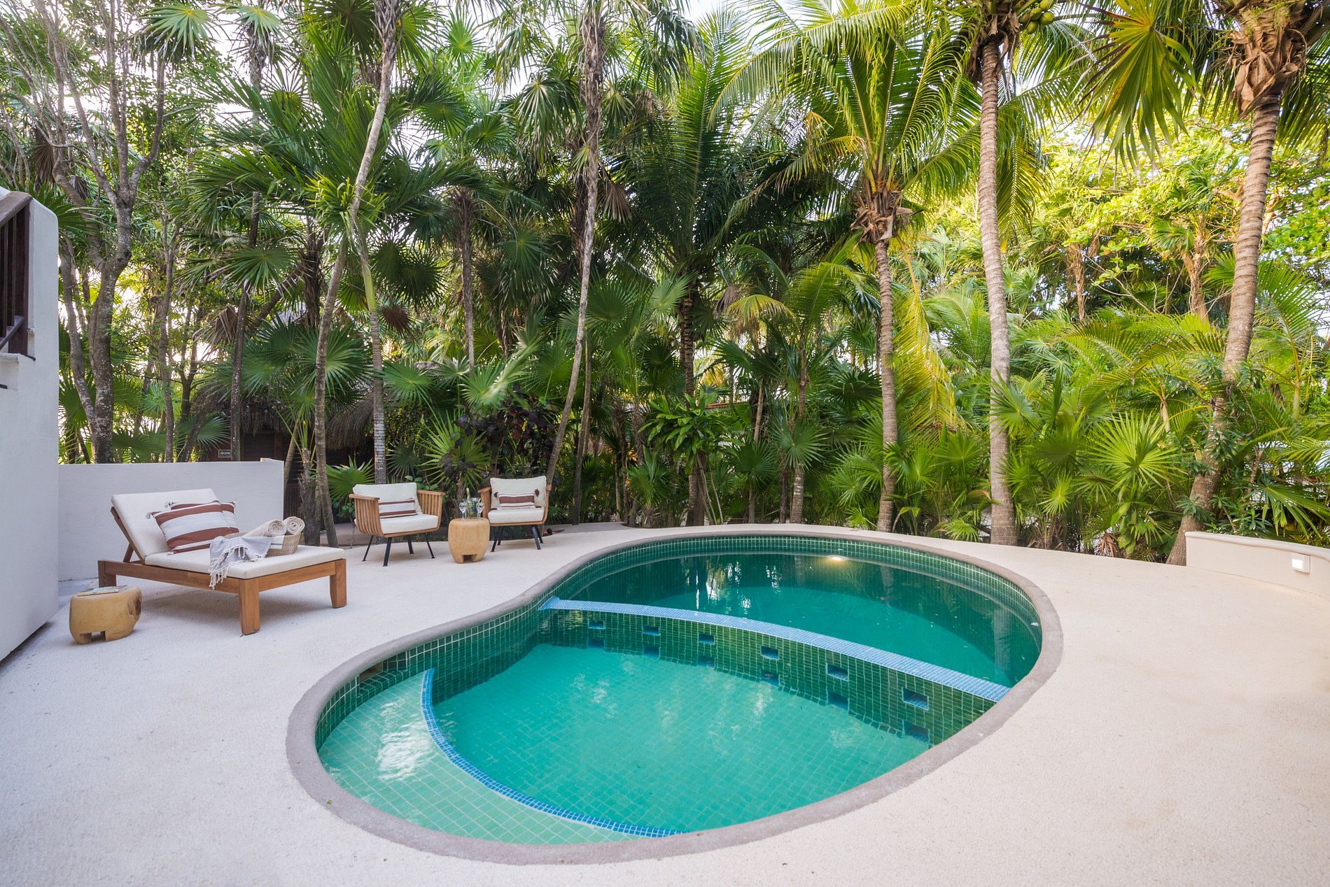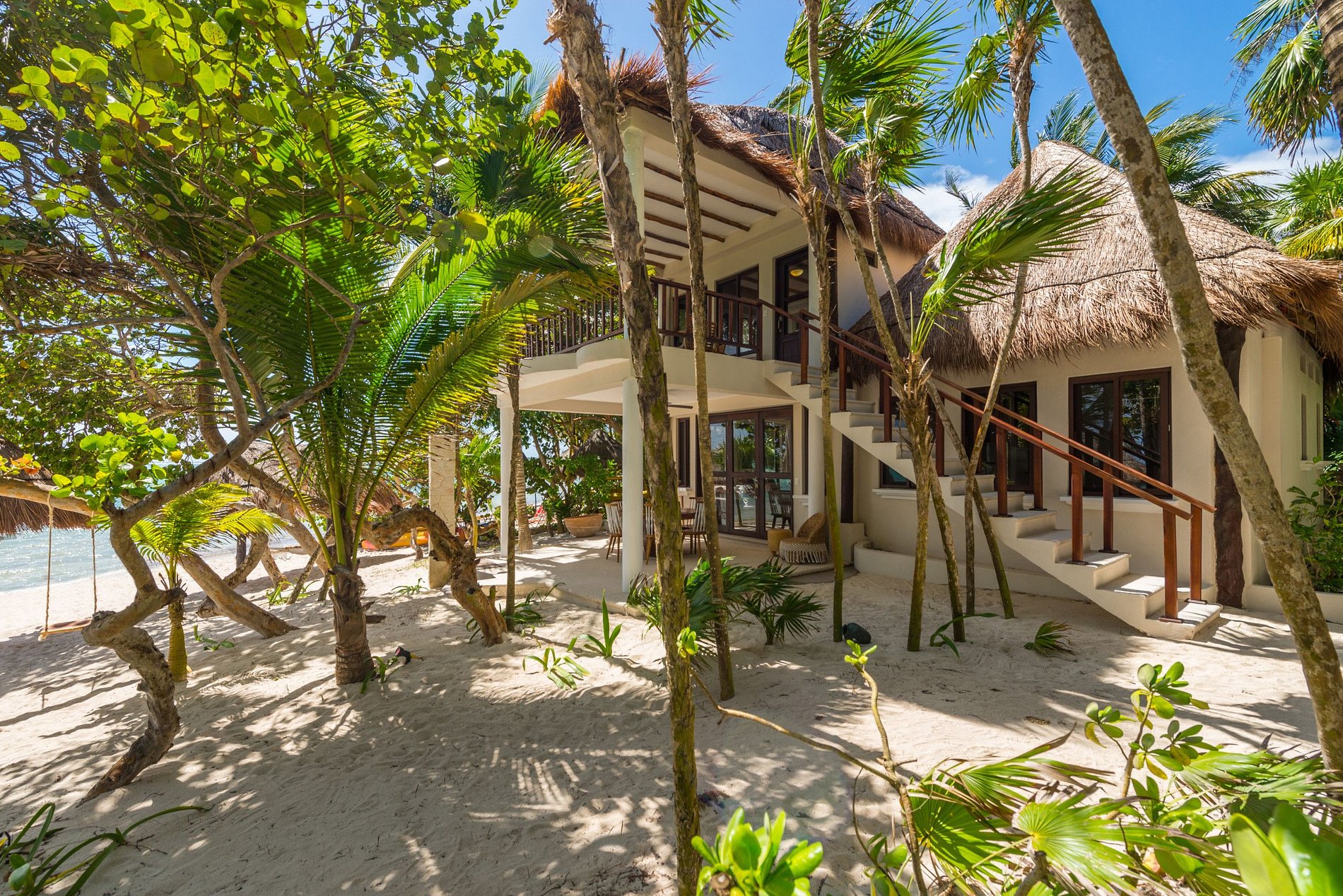 Esta casa es una propiedad frente al mar compuesta por tres bungalows individuales, que se pueden alquilar juntos o por separado. Está situado entre las hermosas playas de arena de la Bahía de Soliman, una playa tranquila y pacífica en Tulum, México.