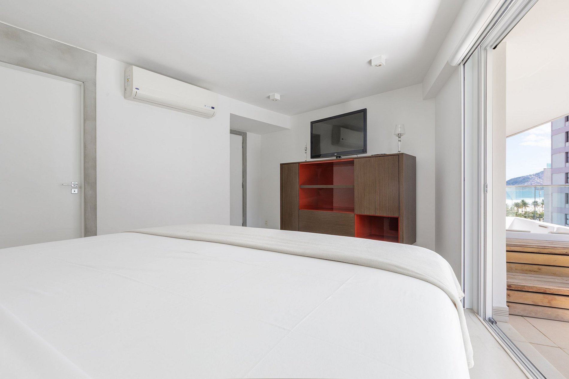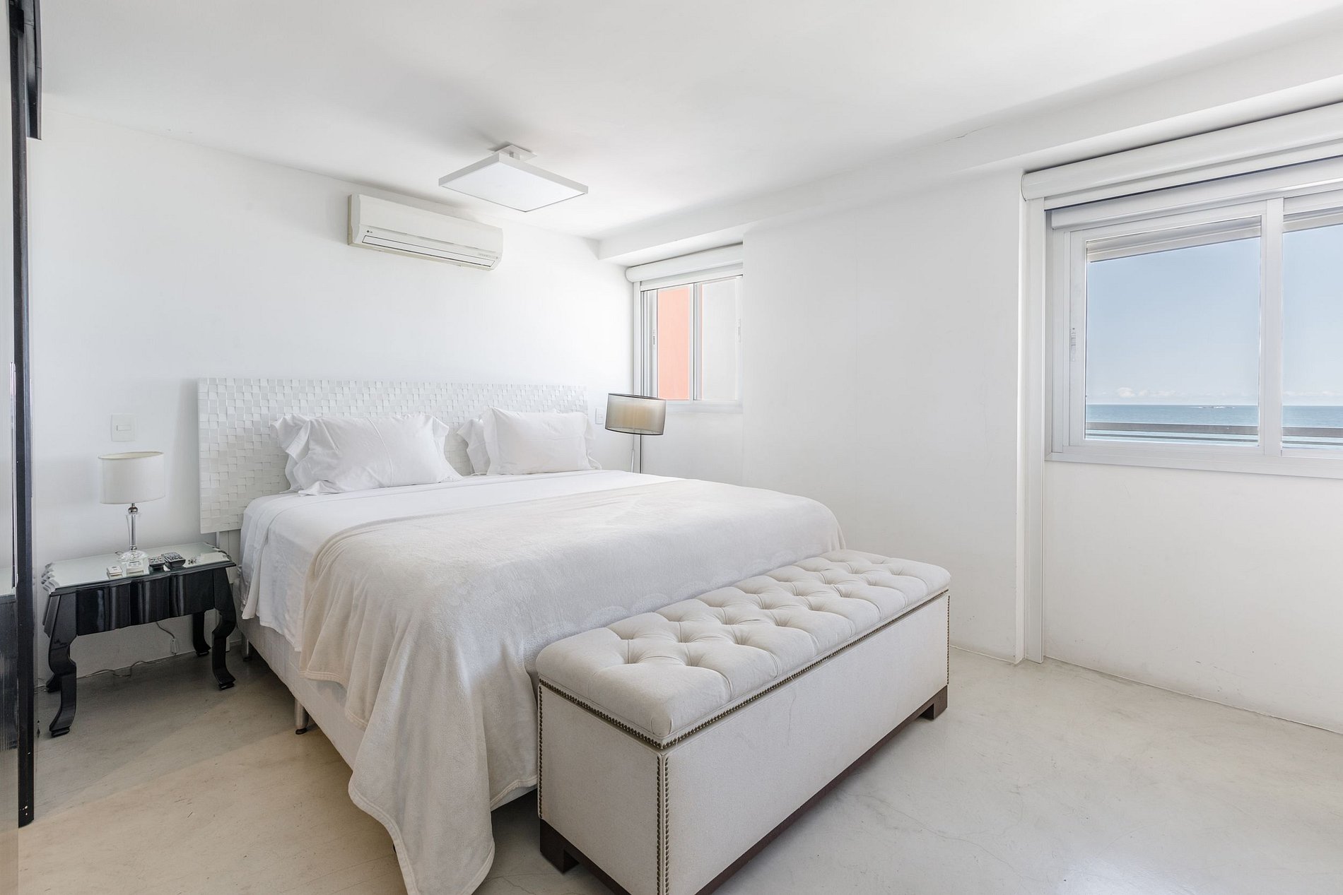 Este hermoso y cómodo apartamento está ubicado frente a la playa de Ipanema y tiene una vista panorámica única a través de su exclusivo balcón circular.