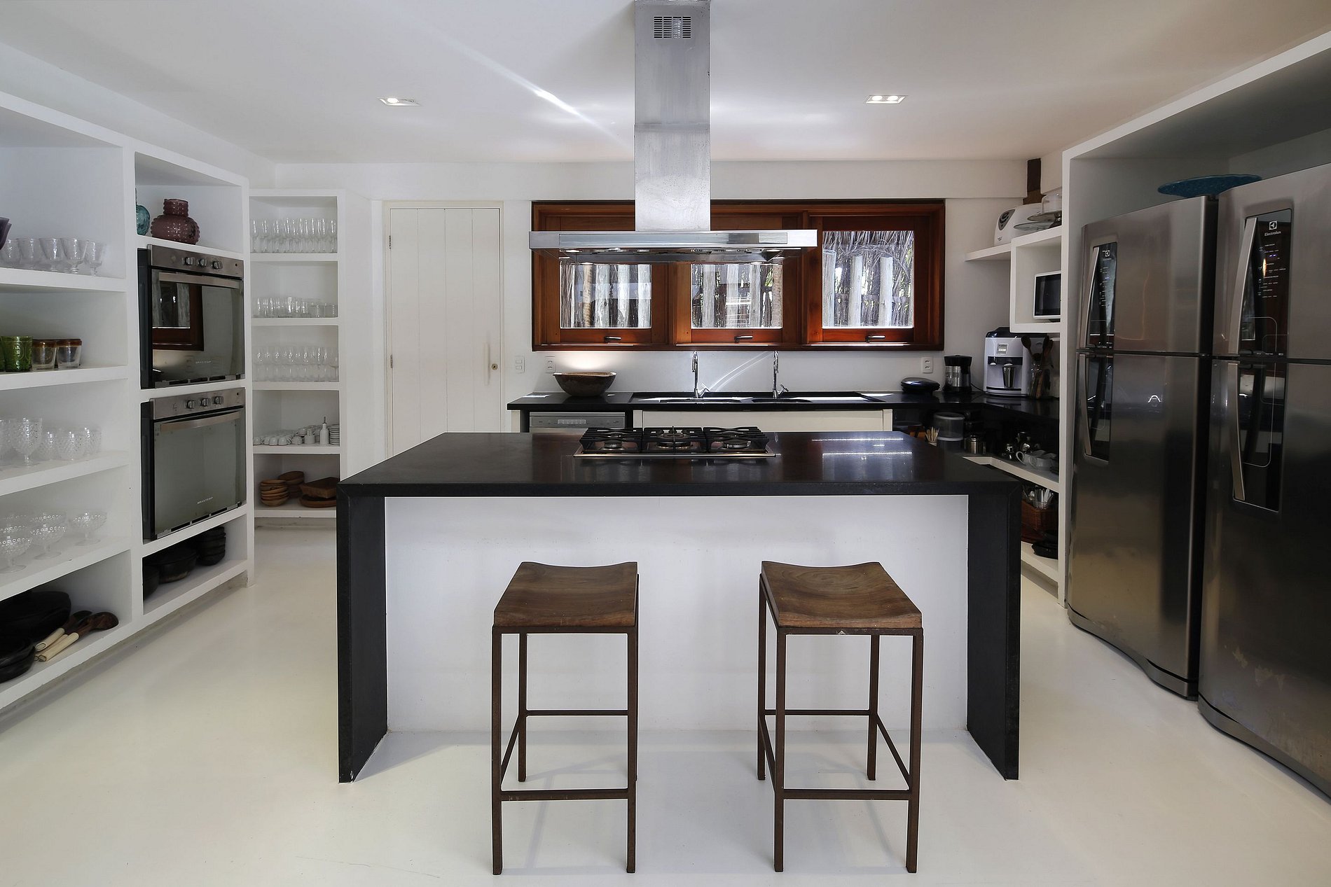 La casa principal tiene dos suites, dos salas interconectadas por una graciosa pasarela de madera pasando encima de la piscina, las dos abiertas para la piscina y el jardín, un comedor y una cocina moderna y totalmente equipada.Discretos y estéticos bungalow, de buena proporción, tiene tres suites más en total.La propiedad está erguida alrededor de una piscina de curvas sutiles, con un agua translucida reflejando la luz dorada del sol del sur de Bahía.