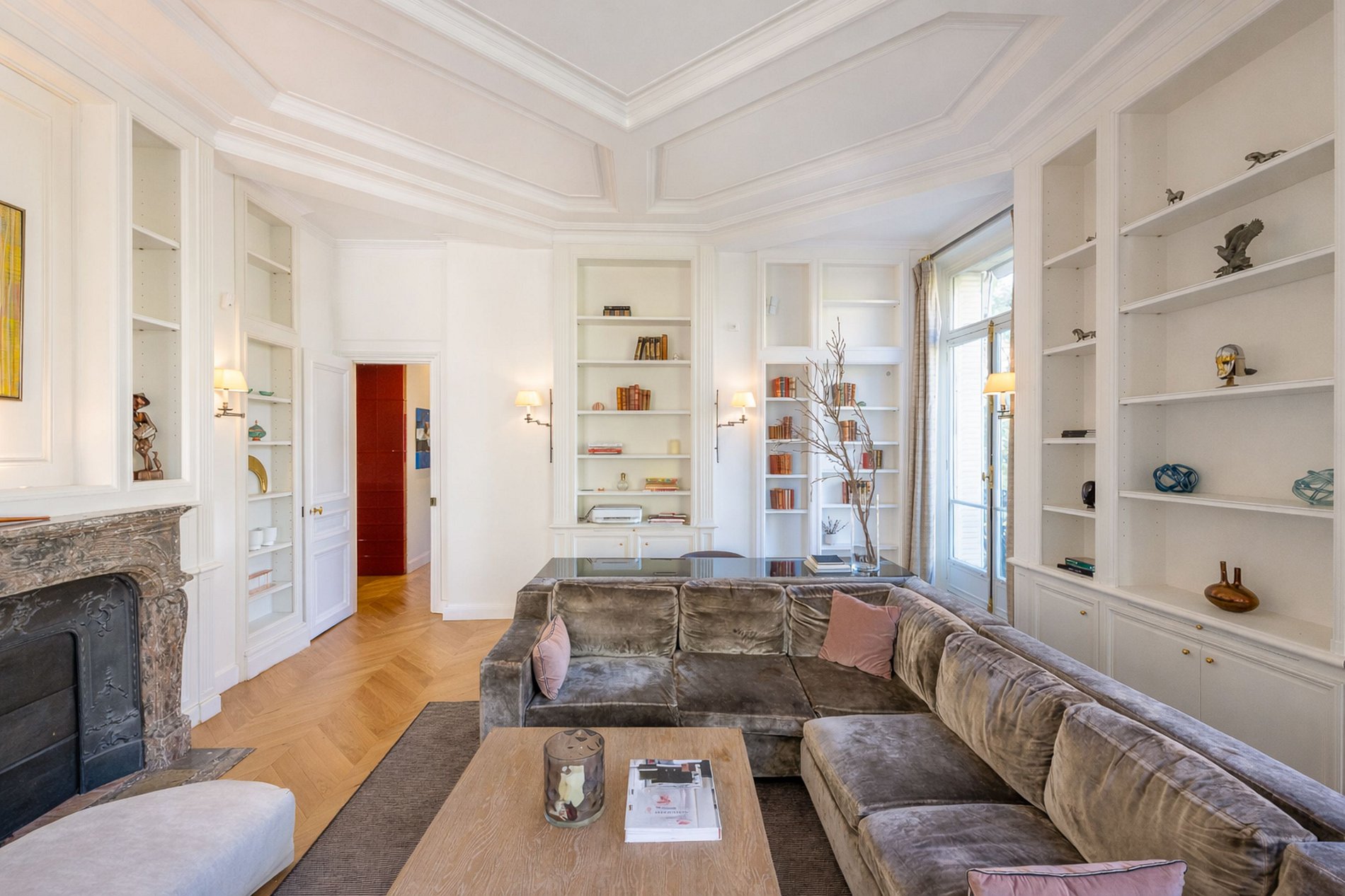 Con una superficie de 240 m², esta residencia recientemente renovada ofrece impresionantes vistas a la iglesia de Saint-Thomas-d’Aquin y encarna el encanto atemporal de la margen izquierda del Sena. Cada habitación se abre a un balcón, invitándote a disfrutar en cualquier momento del vibrante ambiente parisino.